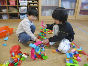 朝は、みんなが来るまでお部屋で遊びました😊ブロックをしたり、お話をしていたり、ひよこどんぐり組のお友だちと手を繋いでいたりしていました🎵そんな中、毎朝幼稚園に来るとゆり組のお友だちはページェントのセリフの練習をしています✨とても頑張っています!