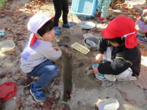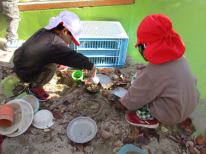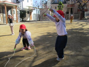 お外遊びにも行きました。縄跳びの練習をしていたり、砂場で落とし穴を作っていたり、おかあさんごっこをしていました🎵