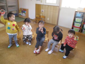 ひよこどんぐり組さんは、お部屋で楽器あそびをしました🎵とても楽しそうでした✨