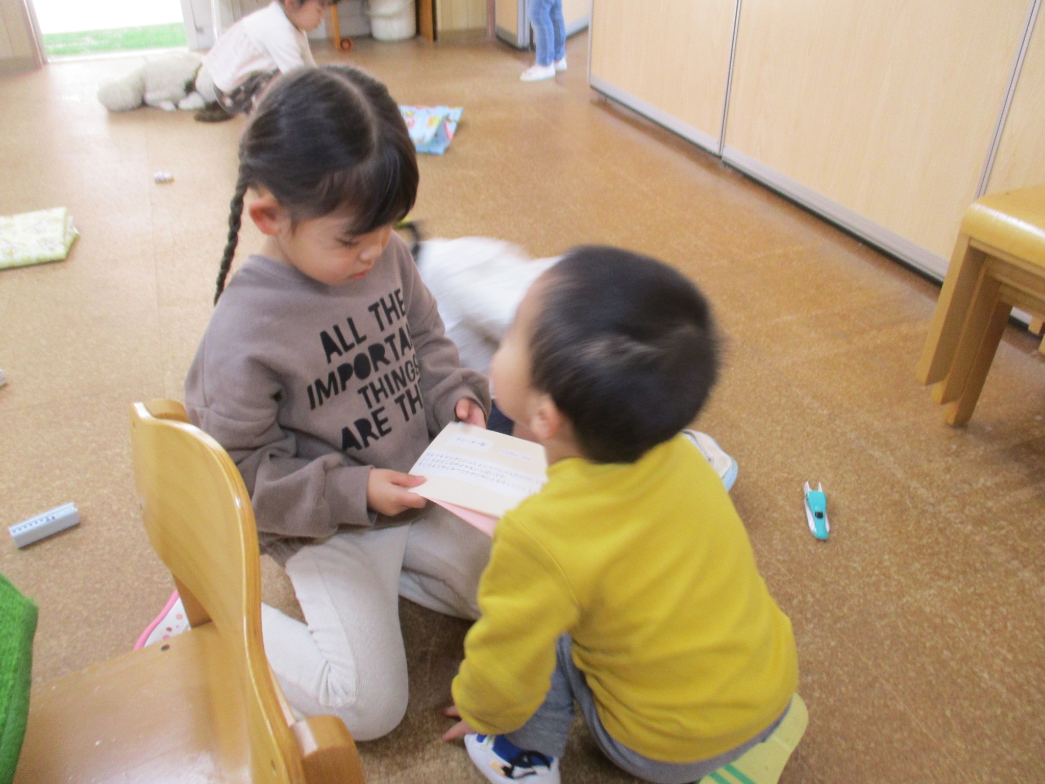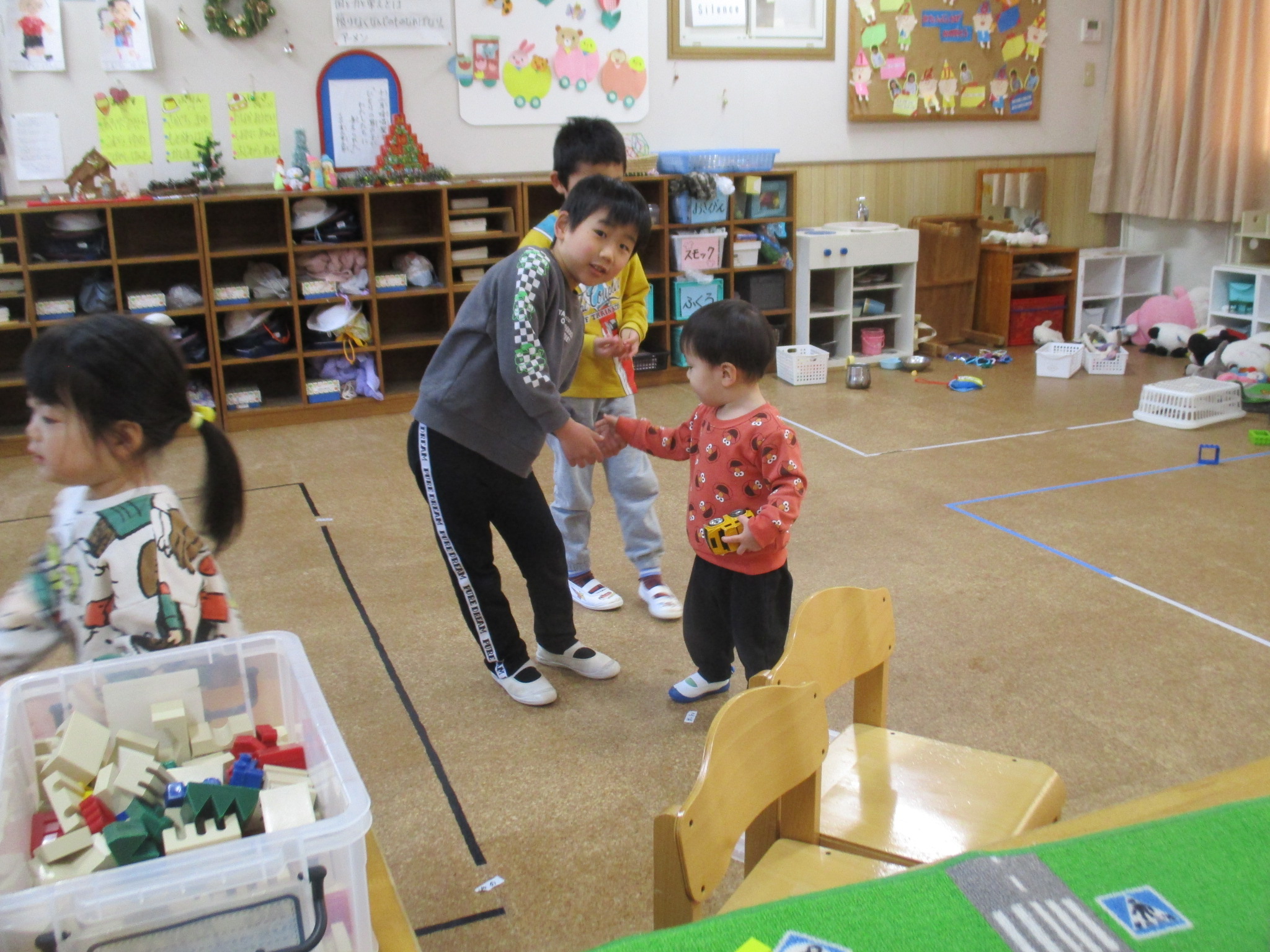朝は、みんなが来るまでお部屋で遊びました😊ブロックをしたり、お話をしていたり、ひよこどんぐり組のお友だちと手を繋いでいたりしていました🎵そんな中、毎朝幼稚園に来るとゆり組のお友だちはページェントのセリフの練習をしています✨とても頑張っています!
