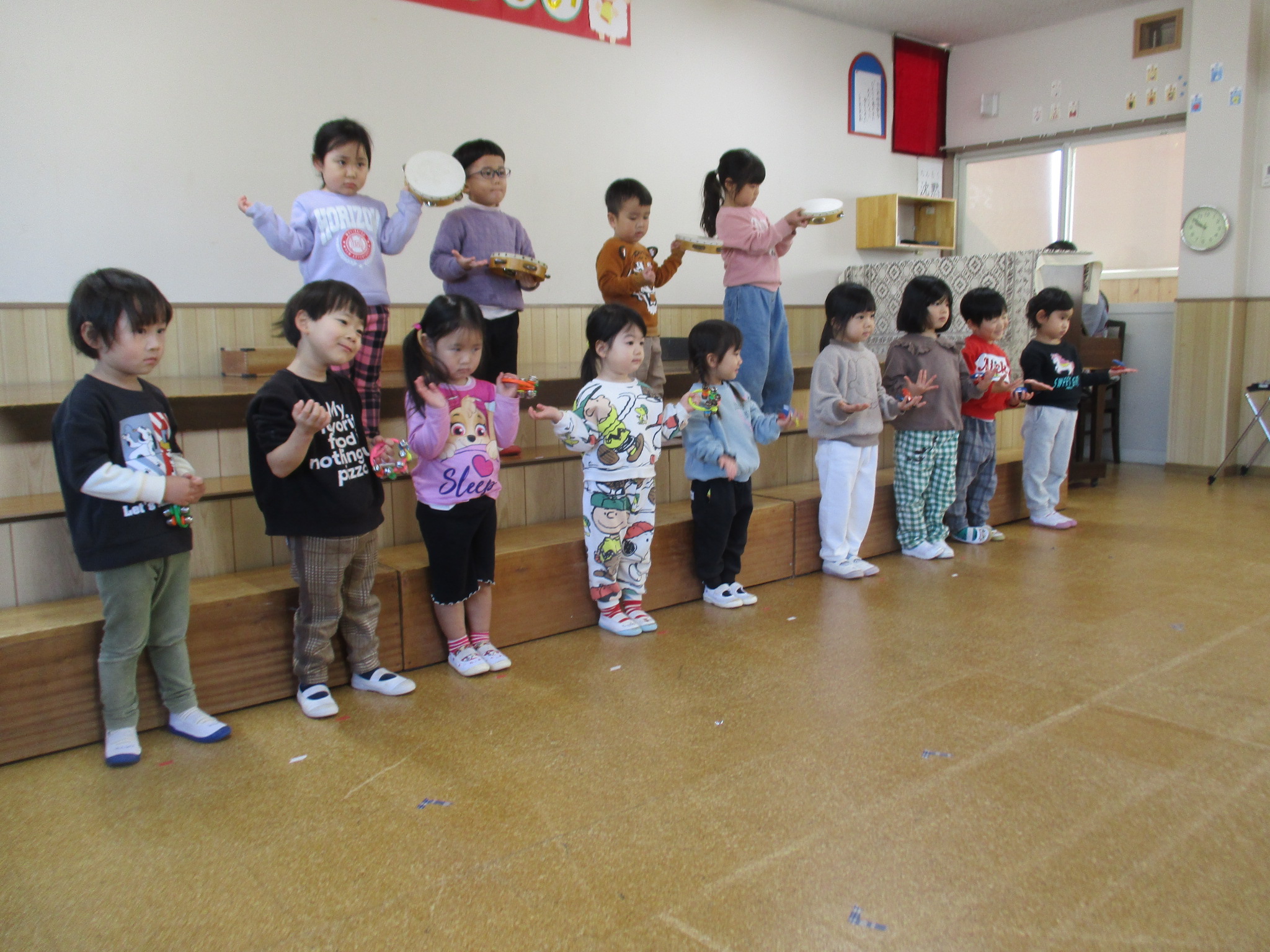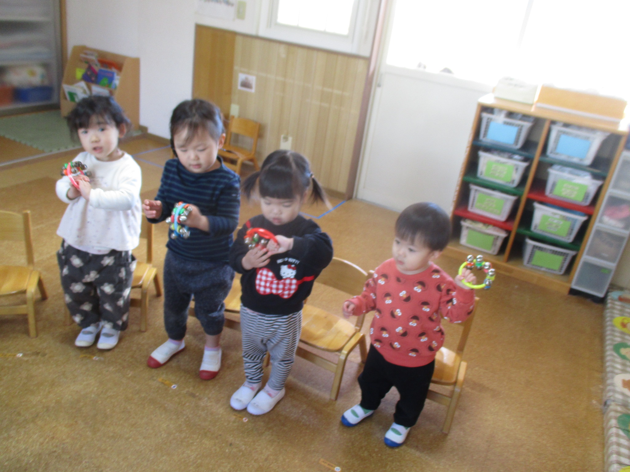 ひよこどんぐり組さんは、お部屋で楽器あそびをしました🎵とても楽しそうでした✨