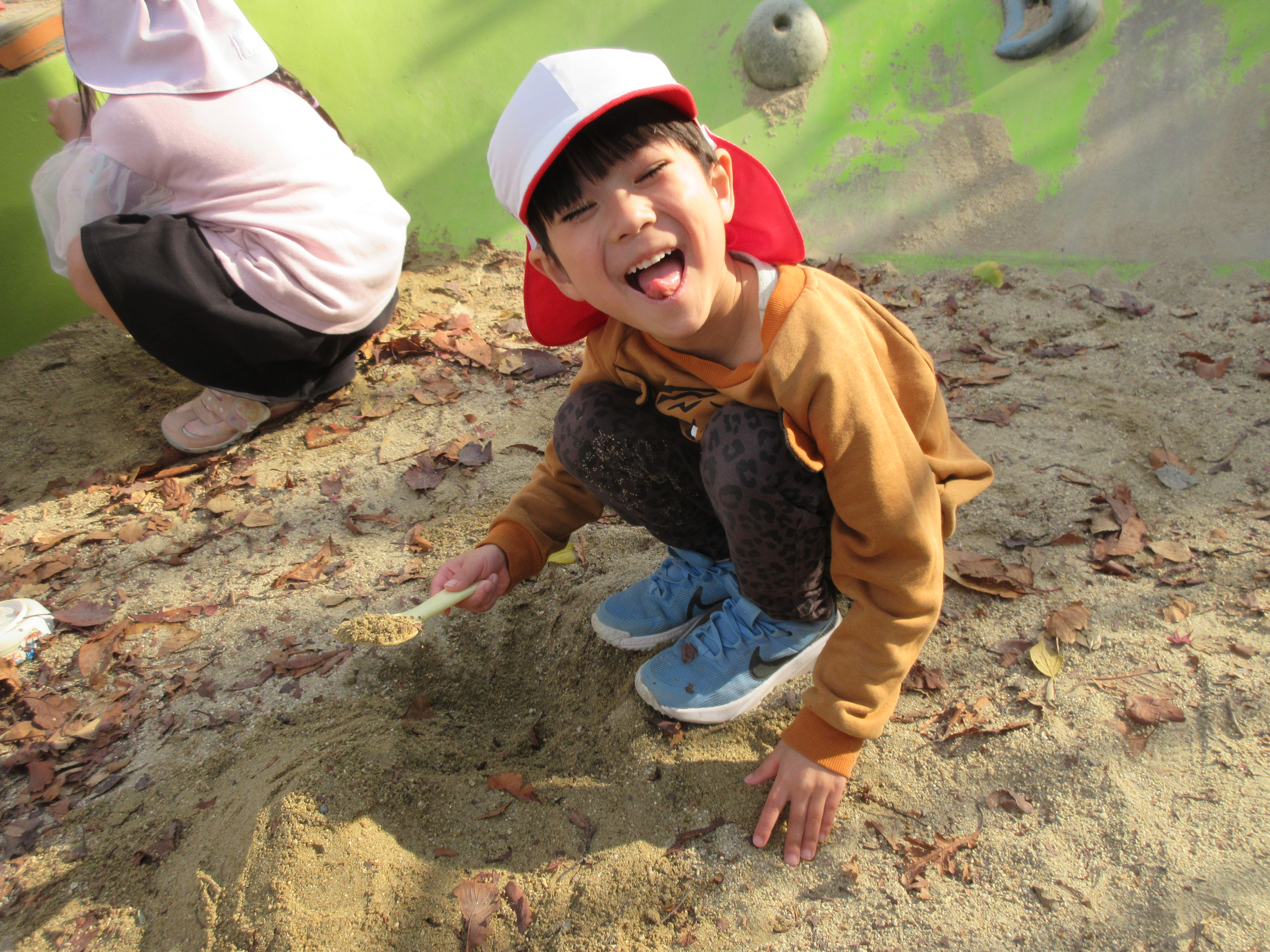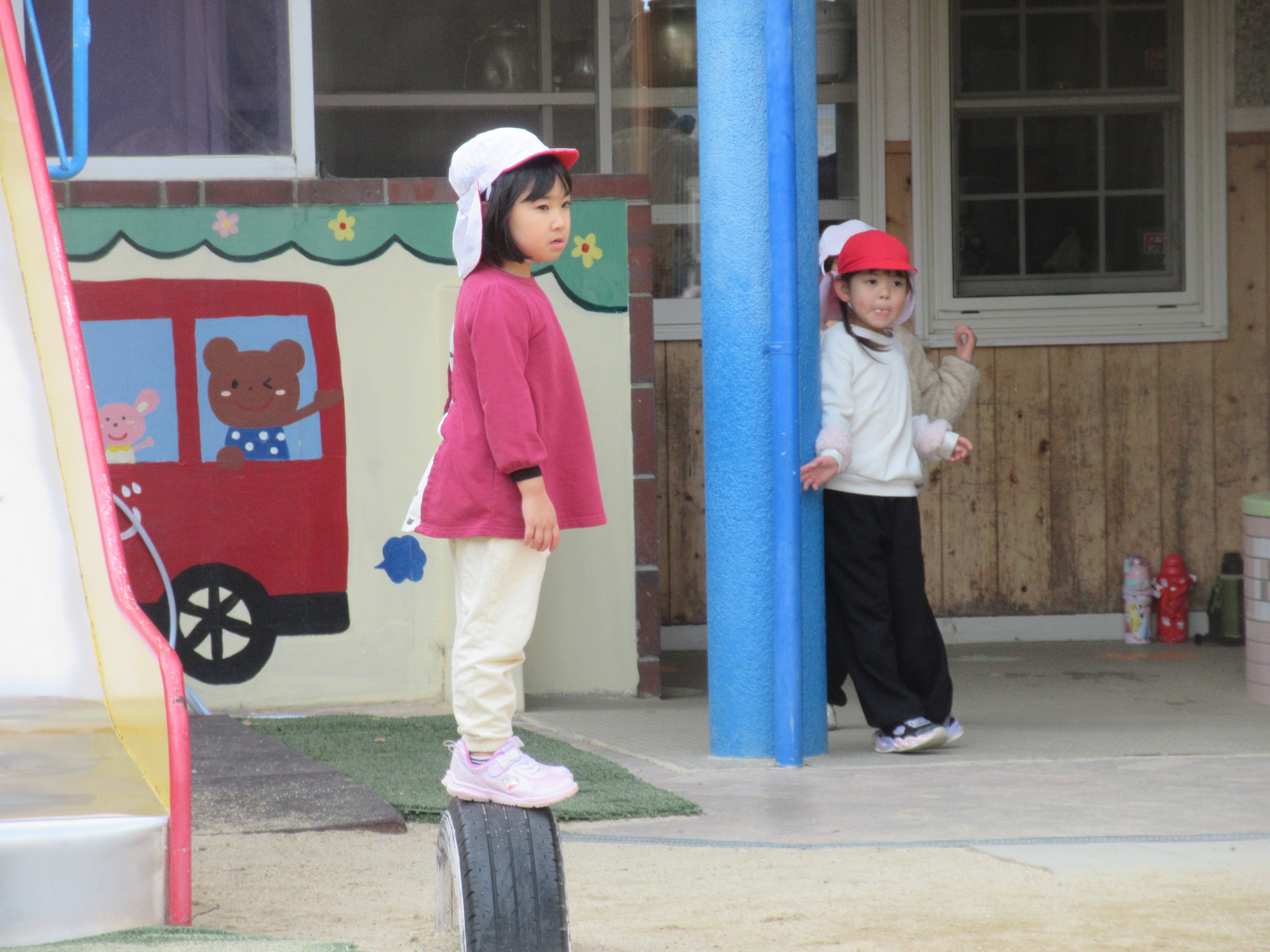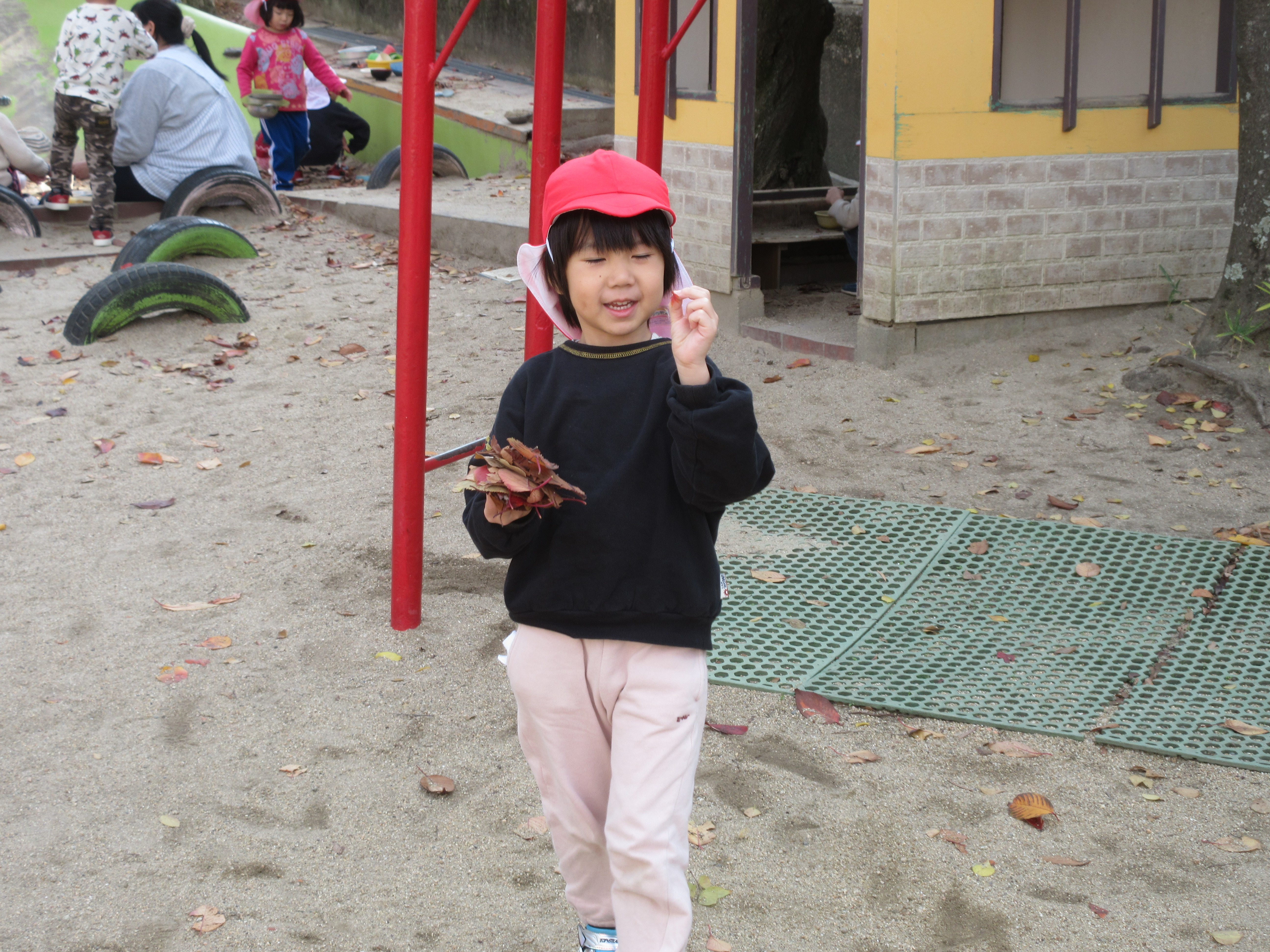 幼稚園の園庭では紅葉が真っ赤に色付きとってもきれいです🍁お外でもたくさん遊びました。