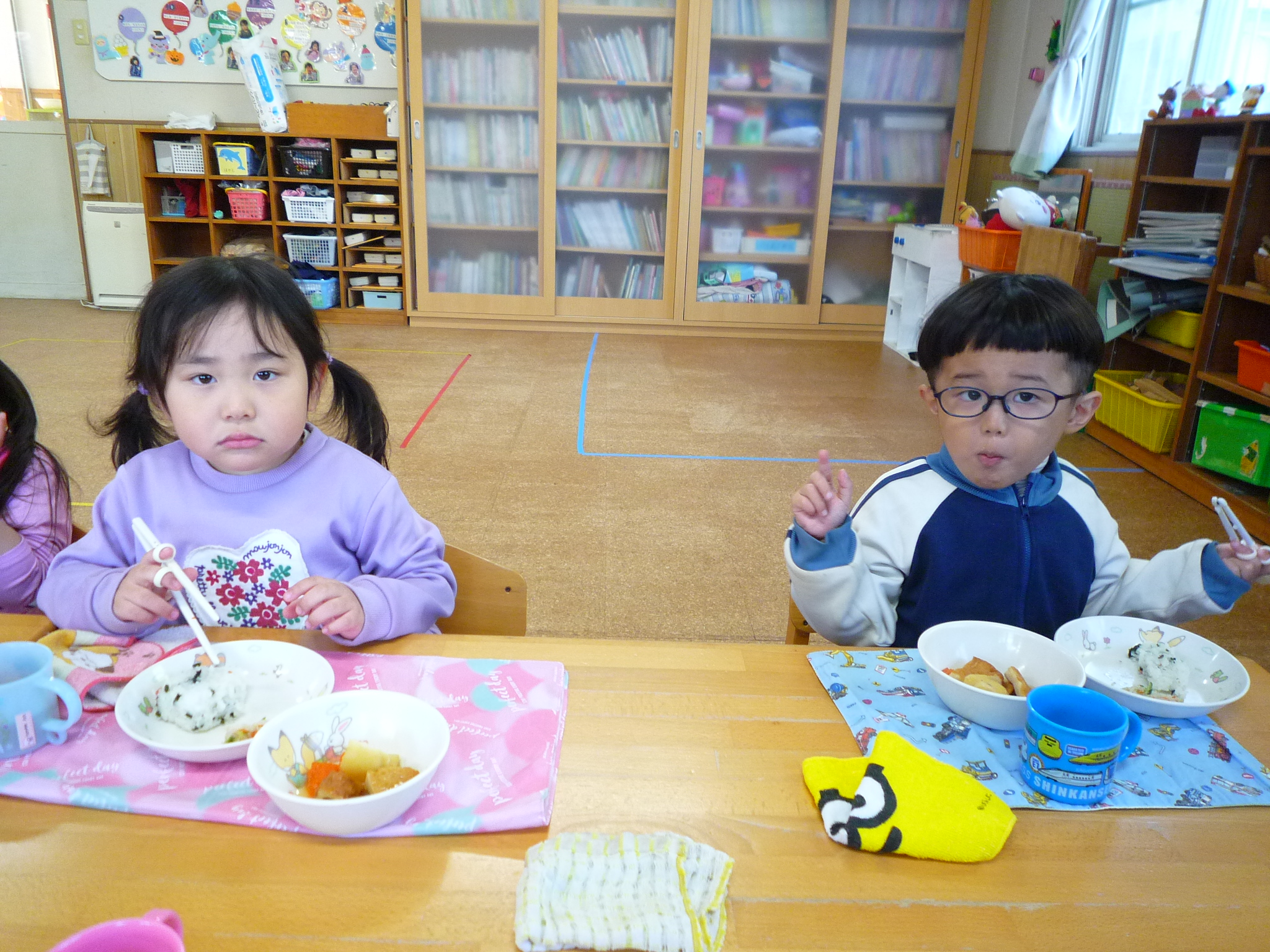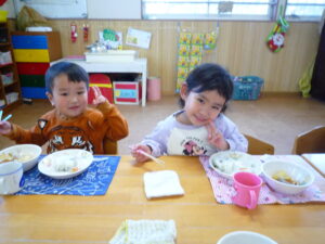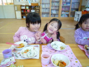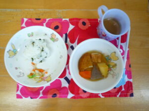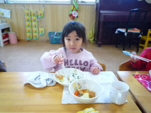 今日の給食は、おでん、おにぎり、胡麻和えでした(^_^)/~寒かったので温かいおでんがとっても美味しかったね♡