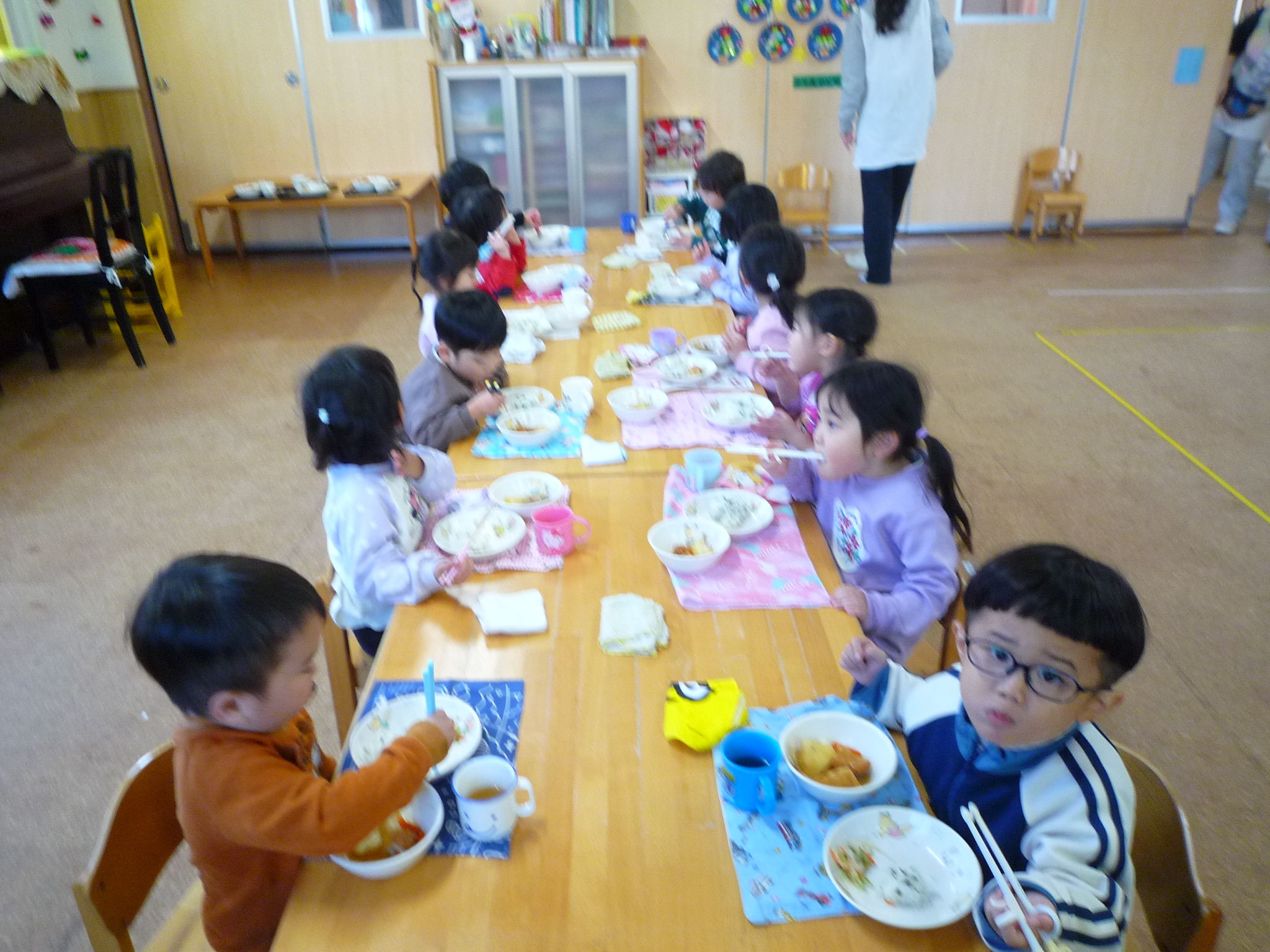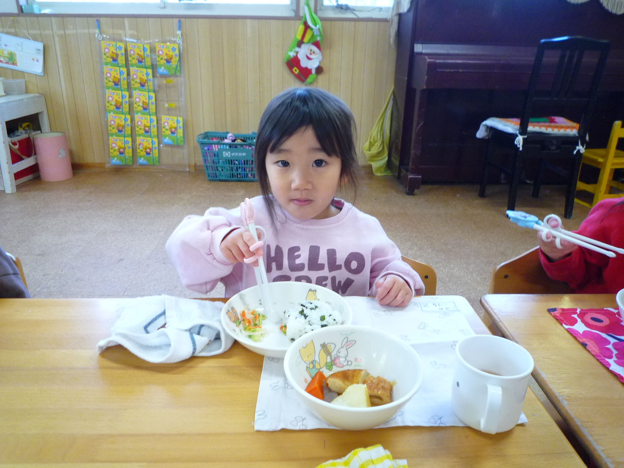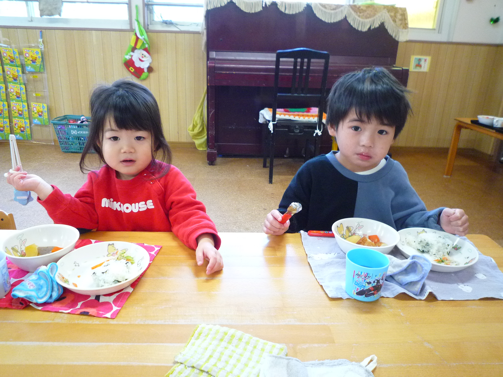 明日はクリスマス会前日準備の為午前保育です!お預かりは1号認定2号認定ともに15時までとさせて頂きます。よろしくお願いします!