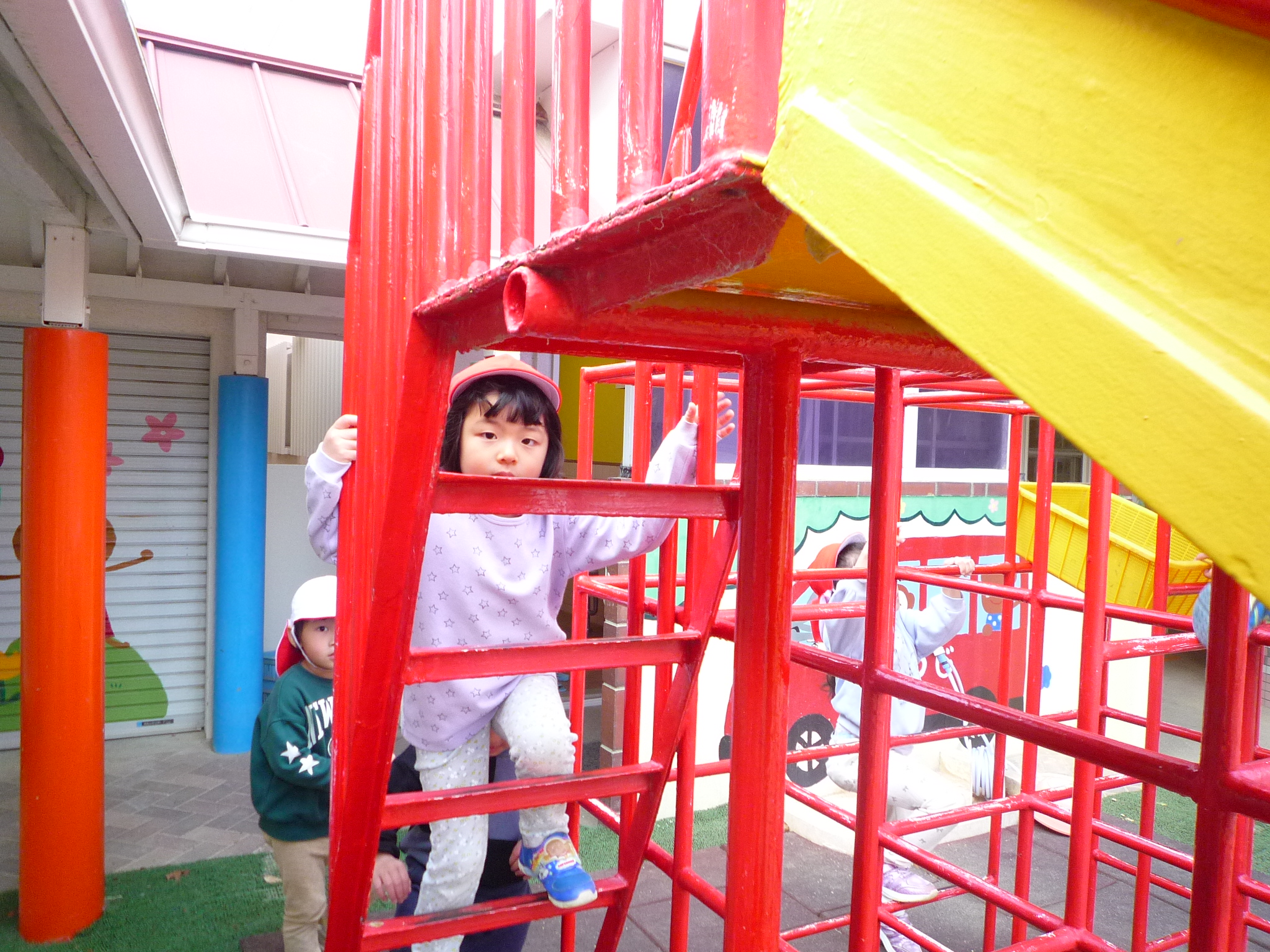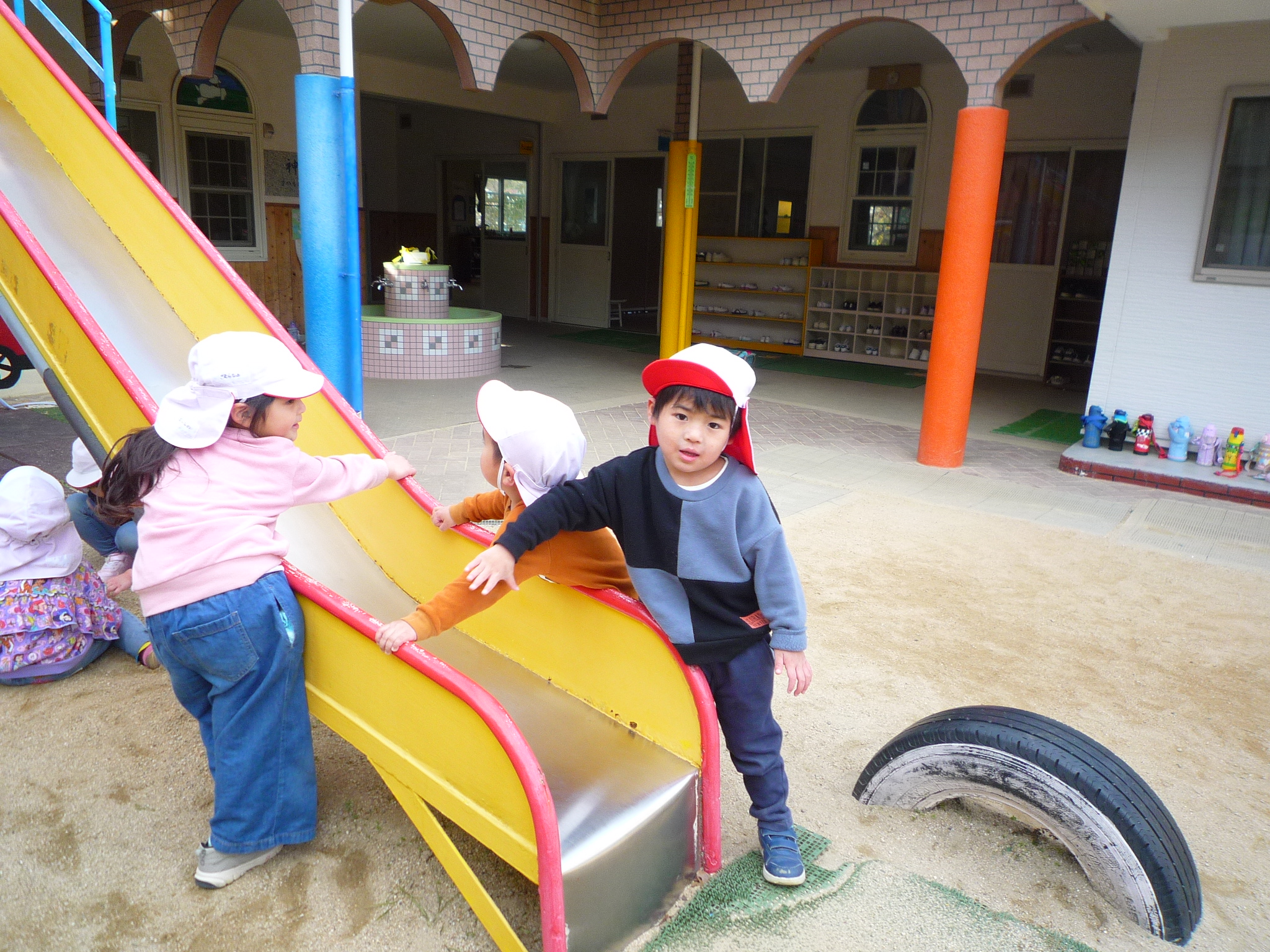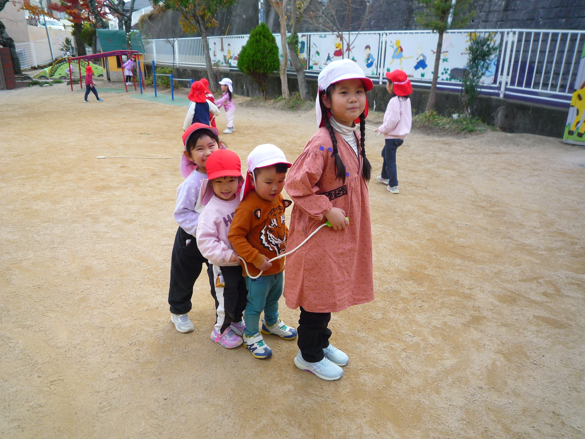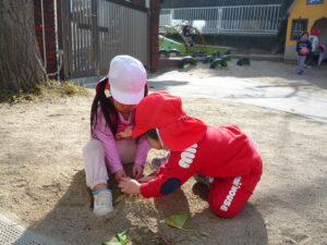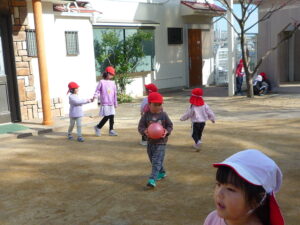 今日は少し冷たい風が吹いていましたが、お外で元気に遊びました(^^♪ゆり組さんやすみれ組さんに遊んでもらって嬉しそうな子どもたちでした(^_-)-☆