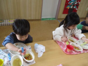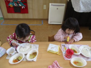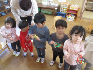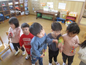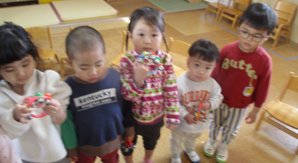 明日のクリスマス会に向けて最後に鈴の練習をしました!! 大きな声で歌いながら最後まで頑張って鳴らしていました♬ クリスマス会をとても楽しみにしている子どもたちでした😊