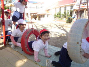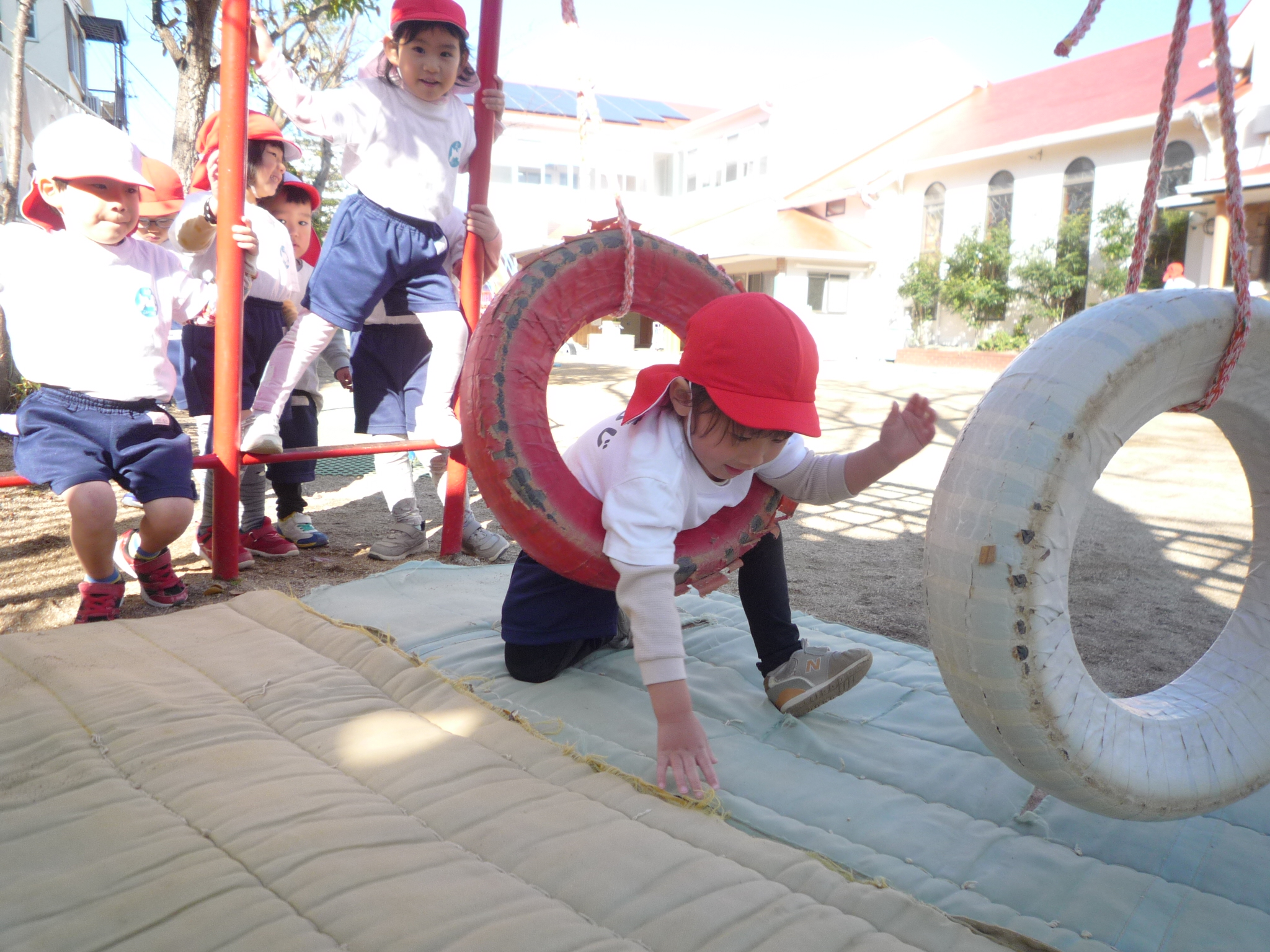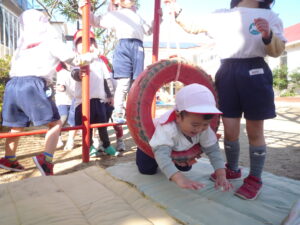 火曜日は体育あそびがありました(^^♪サーキットではタイヤを潜り抜けたりアーチの滑り台を滑ったり楽しく体を動かすことができました!