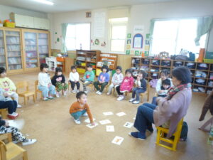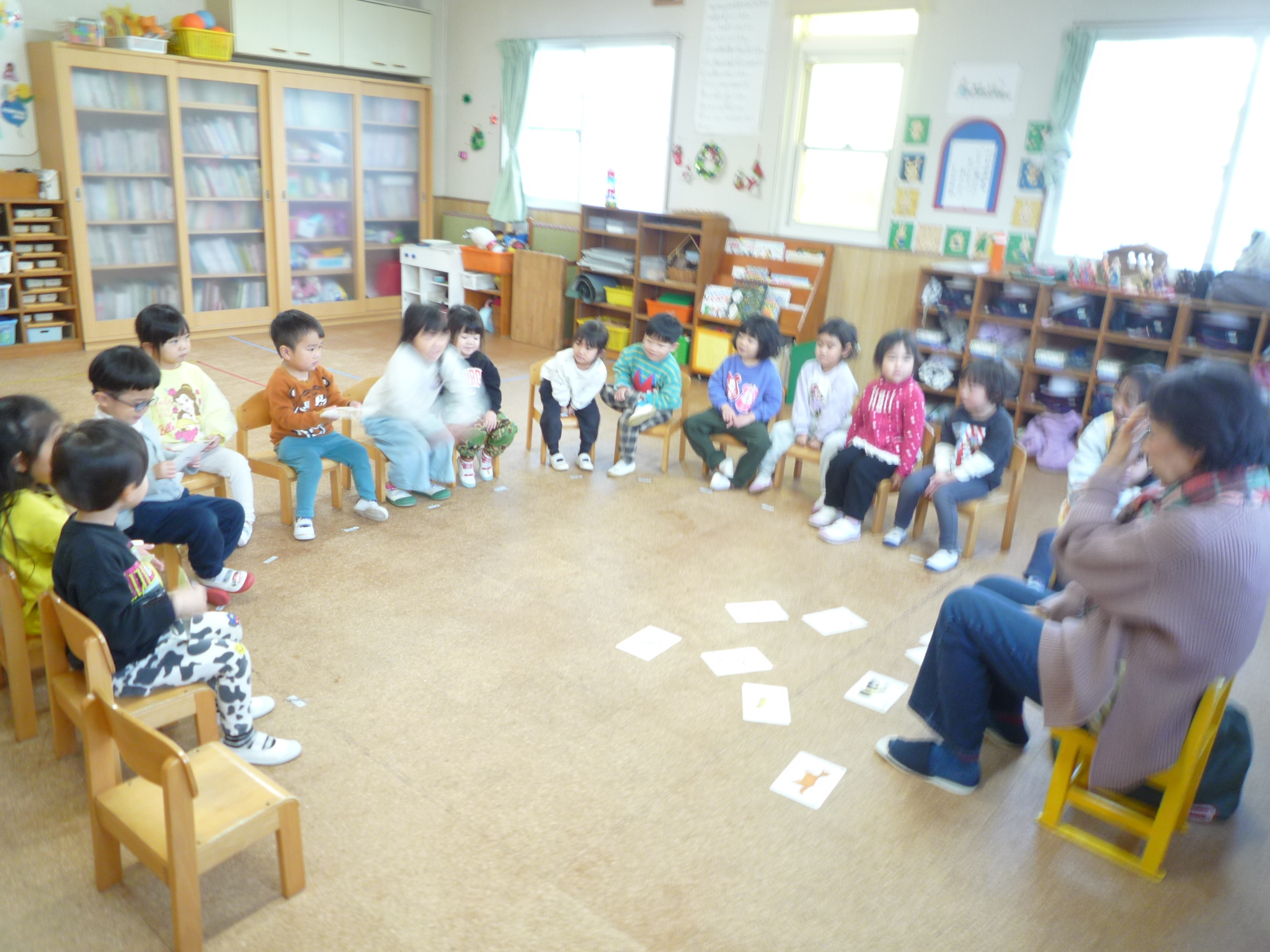 水曜日は英語あそびがありました♬カード取りゲームでは難しい動物も覚えてカードを取る子どもたちでした☆