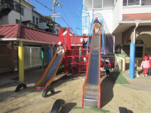 始園式の後はお外で遊びました!子どもたちは久しぶりの幼稚園で楽しそうに遊んでいました。