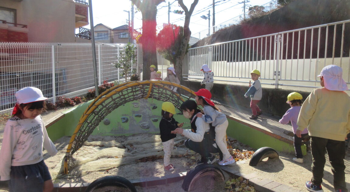 始園式の後はお外で遊びました!子どもたちは久しぶりの幼稚園で楽しそうに遊んでいました。