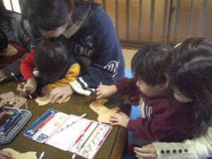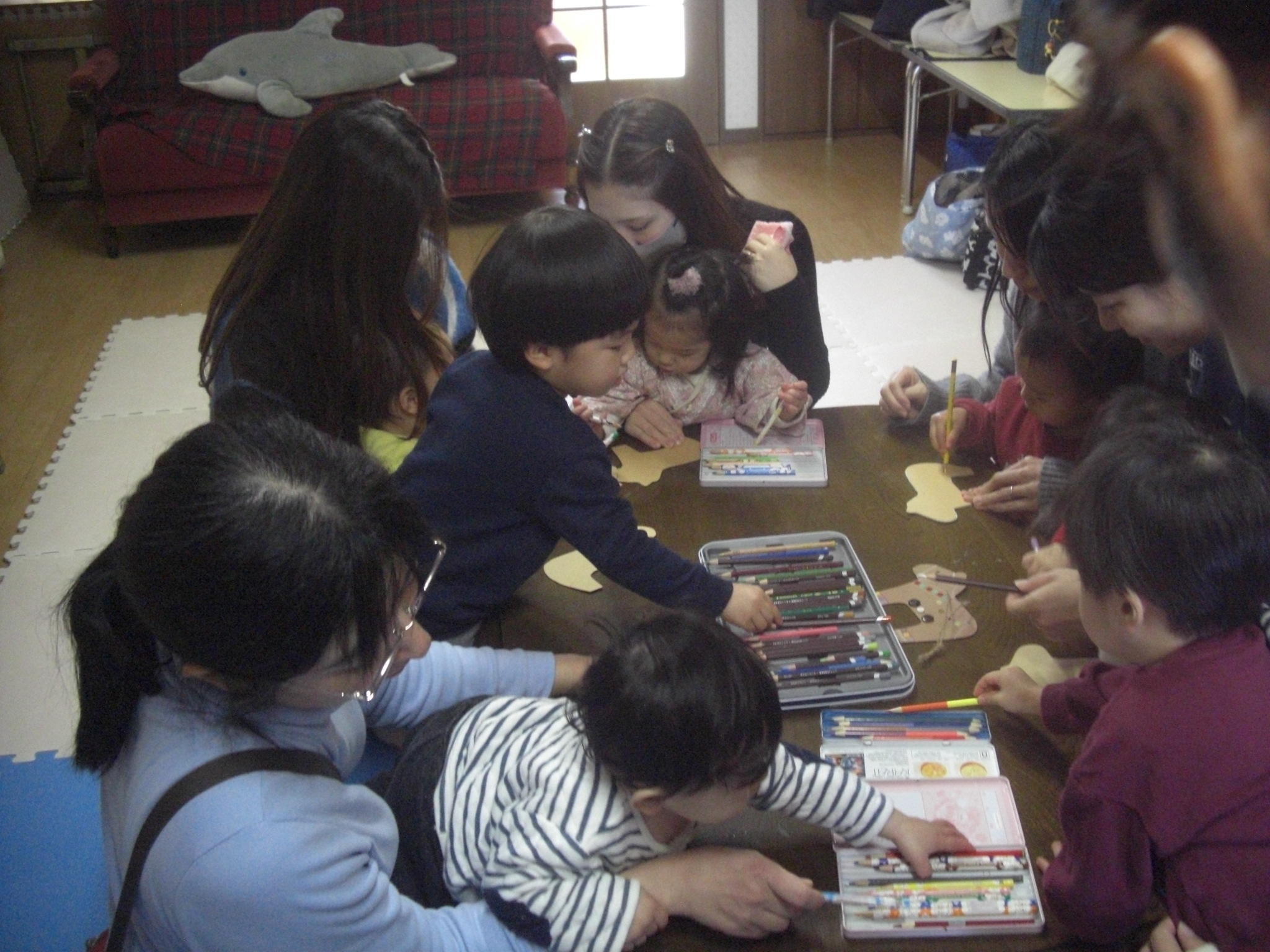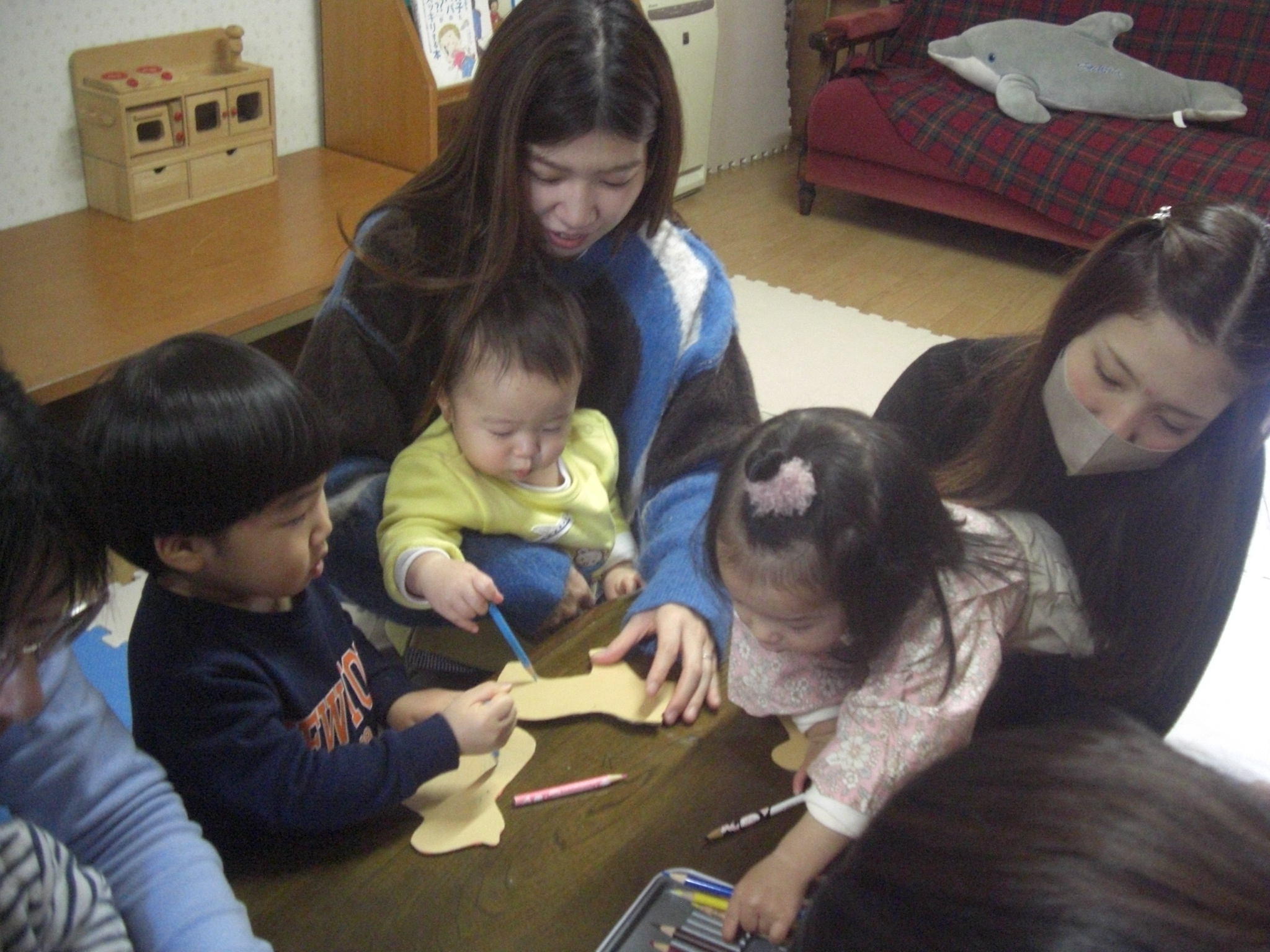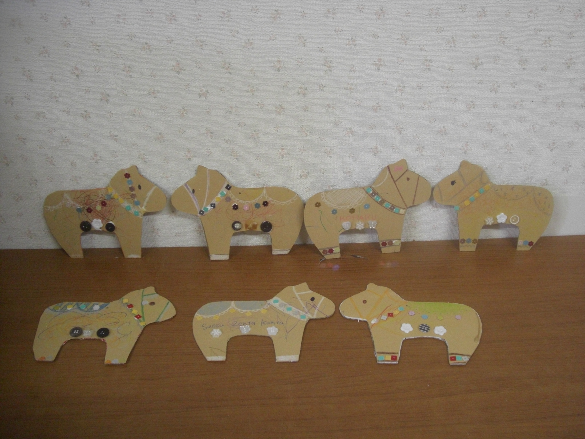 今年は、午年!!午年にちなんで、スウェーデンのダーラナ地方発祥の、幸せを運ぶ馬♡ダーラナホースをつくりました♡子どもたちが色鉛筆で想い想いの色をぬりぬり☆色鉛筆を、上手にに握って、素敵な色をつけれたね♡仕上げは、おかあさ~ん♡小さなスパンコールや、ボタンを、ボンドでつけて完成♡ママたちが、可愛い~♡それいいね~♡と、一生懸命、製作してくれました♡そんなママたちの姿も、最後までママと製作を、楽しんだ子も♡みんな幸せいっぱいで、とっても素敵な幸せを運んでくれるダーラナホースが出来ました♡大好きなたまごクラブのみんなが、2026年も幸せに過ごせますように♡