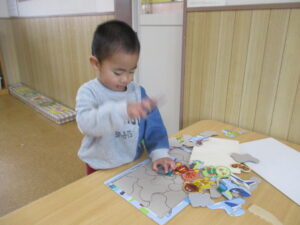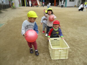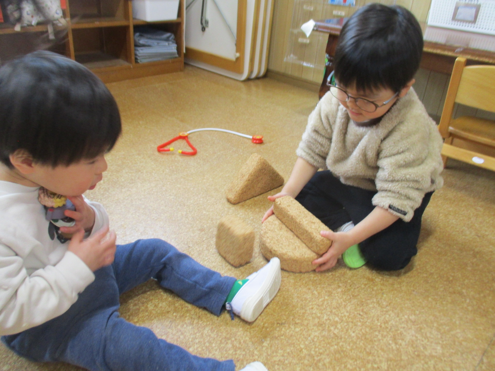 ひょこどんぐり組さんは、お外あそびとお部屋でも遊びました😊お外ではフラフープやボールあそび、お部屋では積み木で遊んでいたり、パズルをしていました🎵