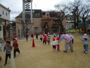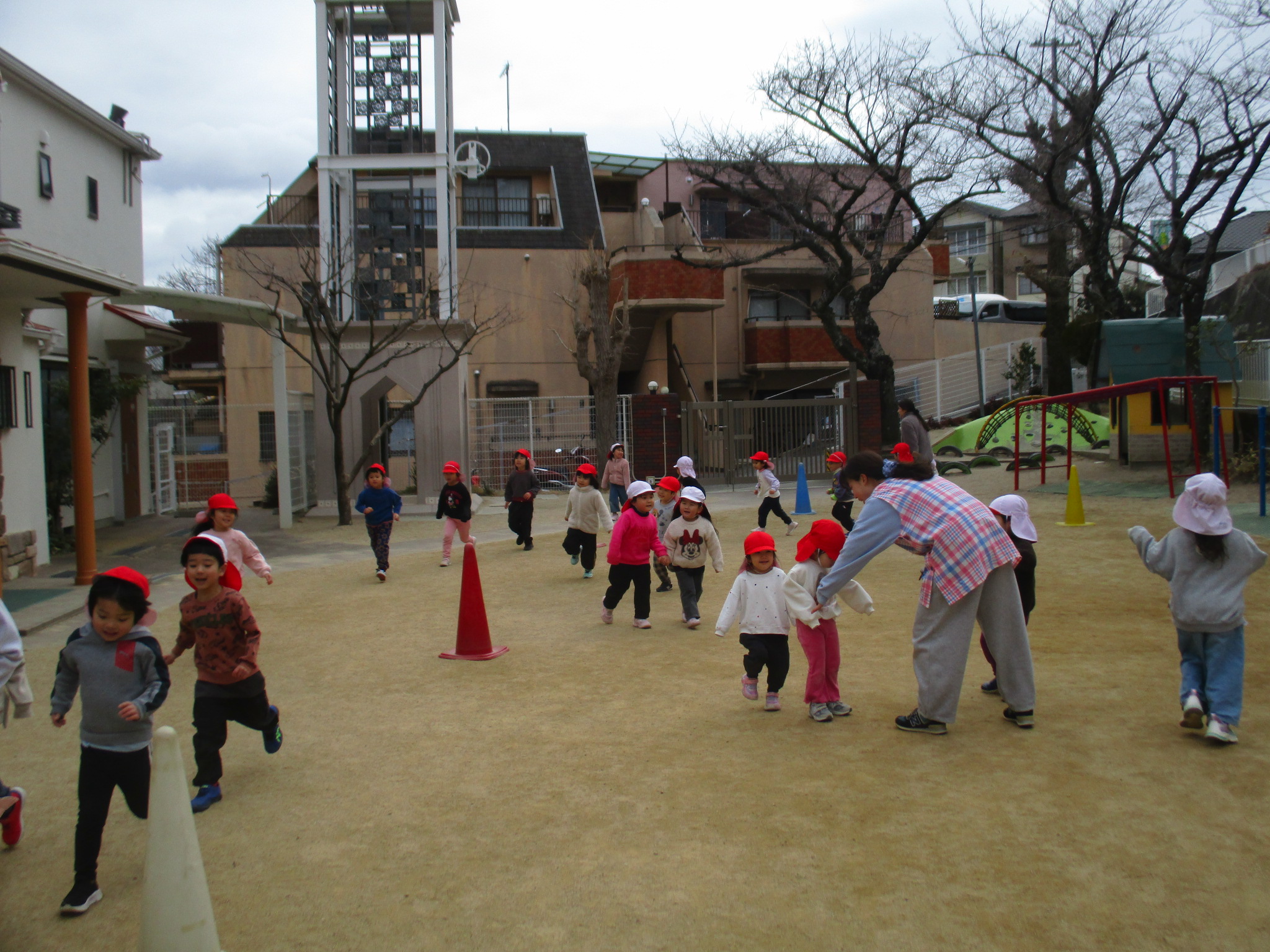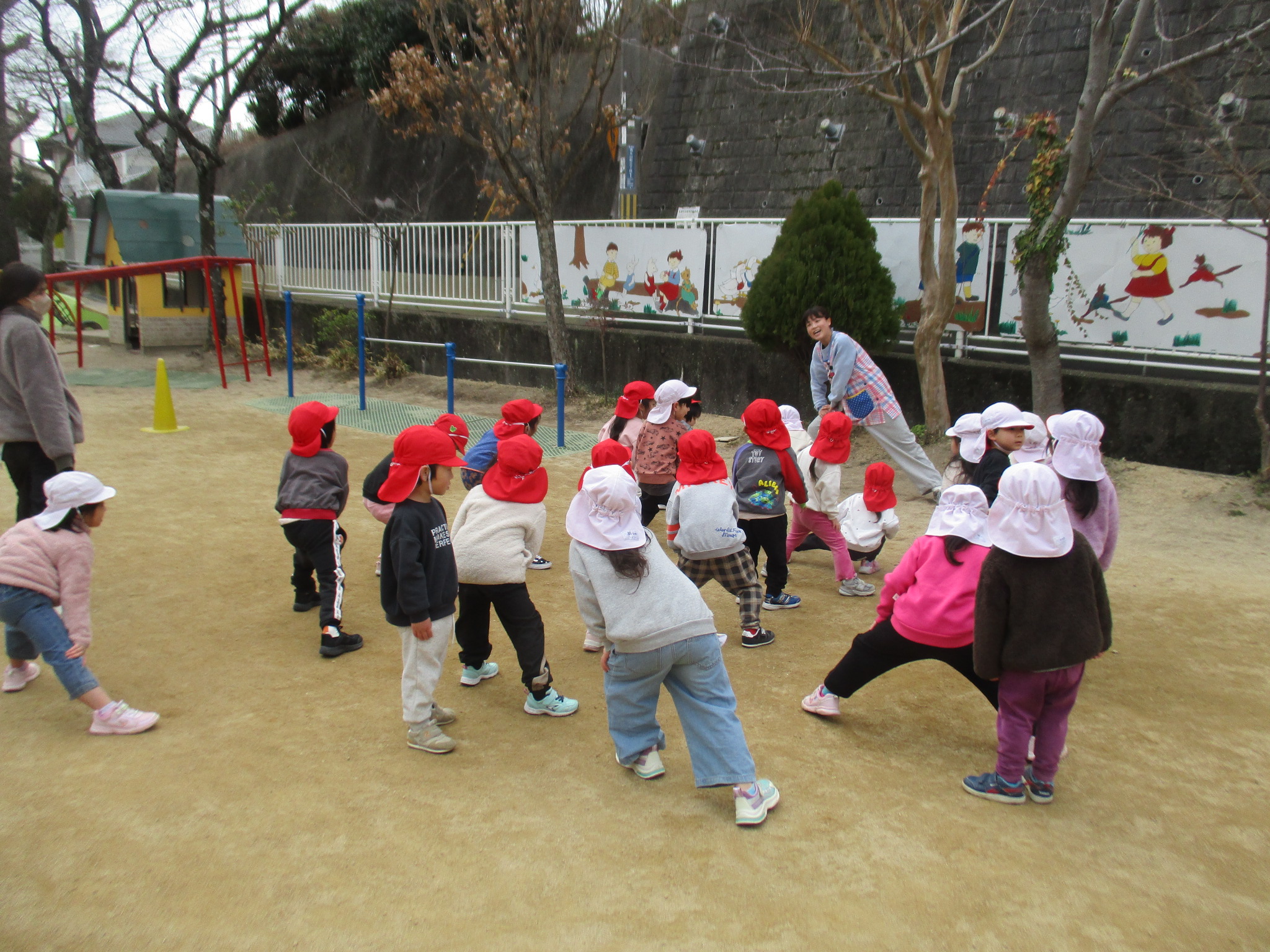 たんぽぽ組とすみれ組はお外でマラソンをしました😊沢山身体を動かしてぽかぽかになりました✨
