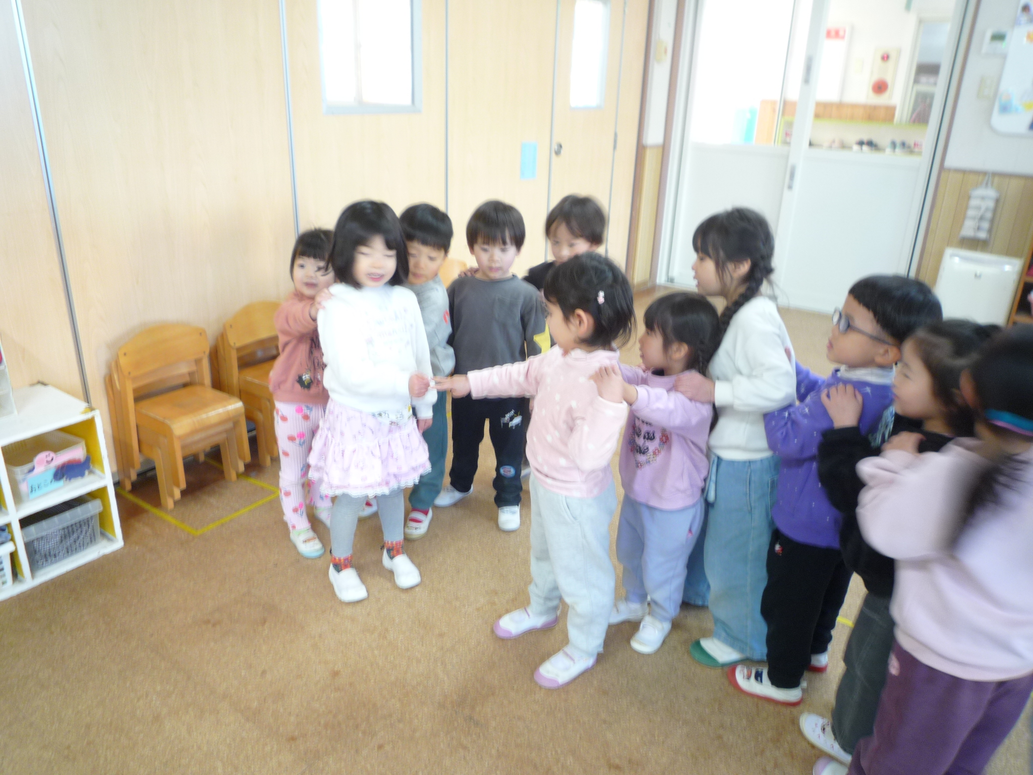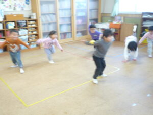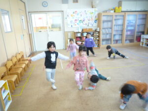 今週も1週間終わりましたね(^_^)/~今日はお部屋ではリトミックをしたり、じゃんけん列車をしました♡じゃんけんのルールも少しづつ理解し「勝った「負けた」が分かるようになってきた子どもたちです♬