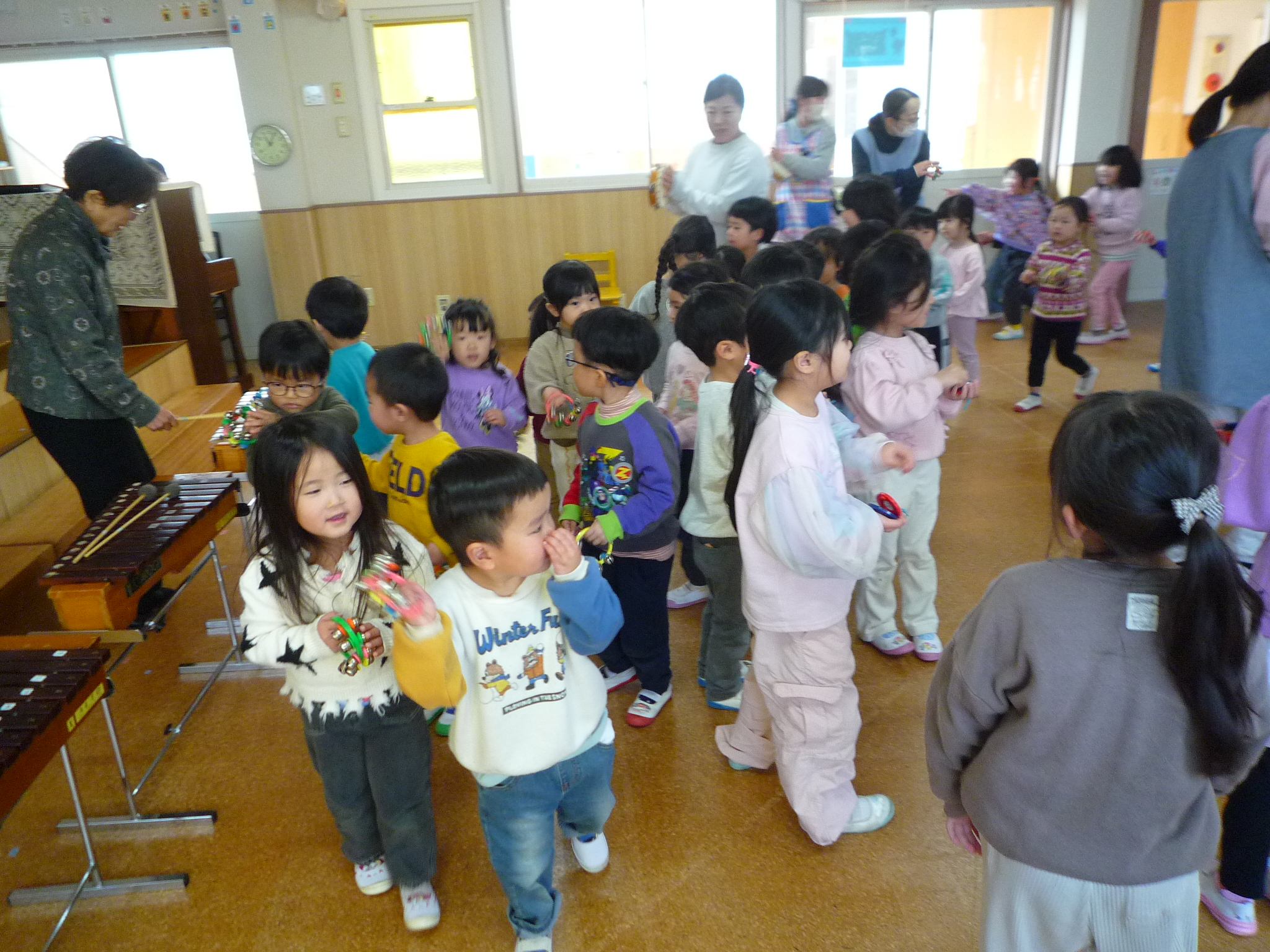今日は2月生まれの子どもたちのお誕生日会でした✨お友だちや保護者にお祝いしてもらってとても嬉しそうでした😊お楽しみでは、みんなで楽器で遊びました🎵