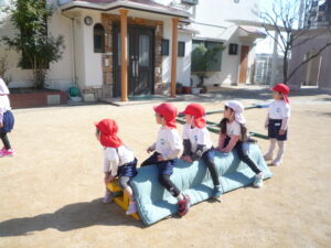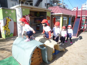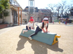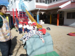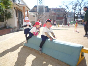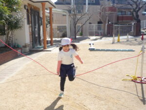今日は、体育あそびがありました!今日のサーキットでは跳び箱から跳び箱へジャンプしたり、長縄を跳んだり、いつもと違うものに、「できるかな?」と少し不安そうな子もいましたが繰り返しするうちに「できたよー!」と嬉しそうに見せてくれる子どもたちでした♡