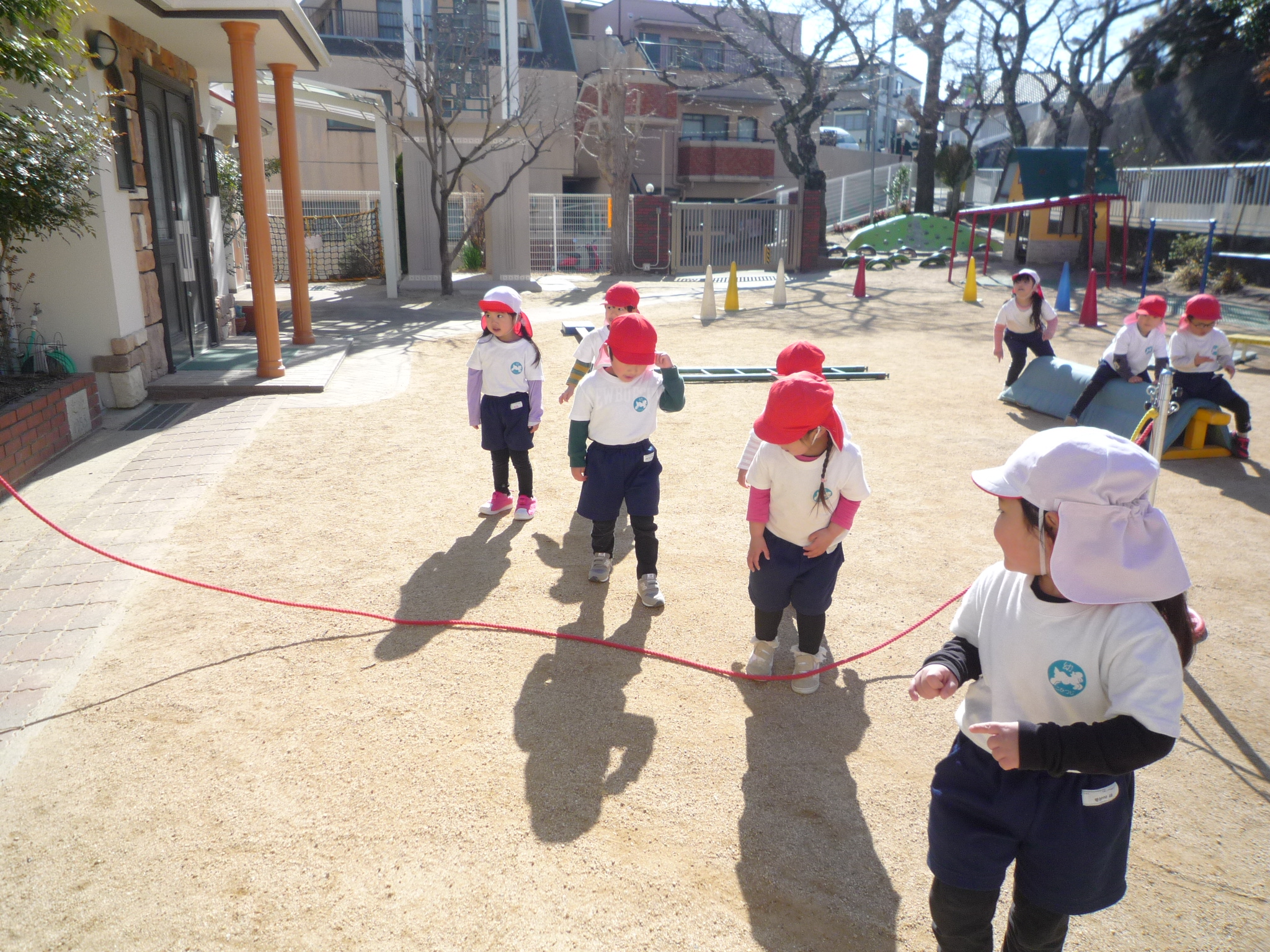 今日は、体育あそびがありました!今日のサーキットでは跳び箱から跳び箱へジャンプしたり、長縄を跳んだり、いつもと違うものに、「できるかな?」と少し不安そうな子もいましたが繰り返しするうちに「できたよー!」と嬉しそうに見せてくれる子どもたちでした♡