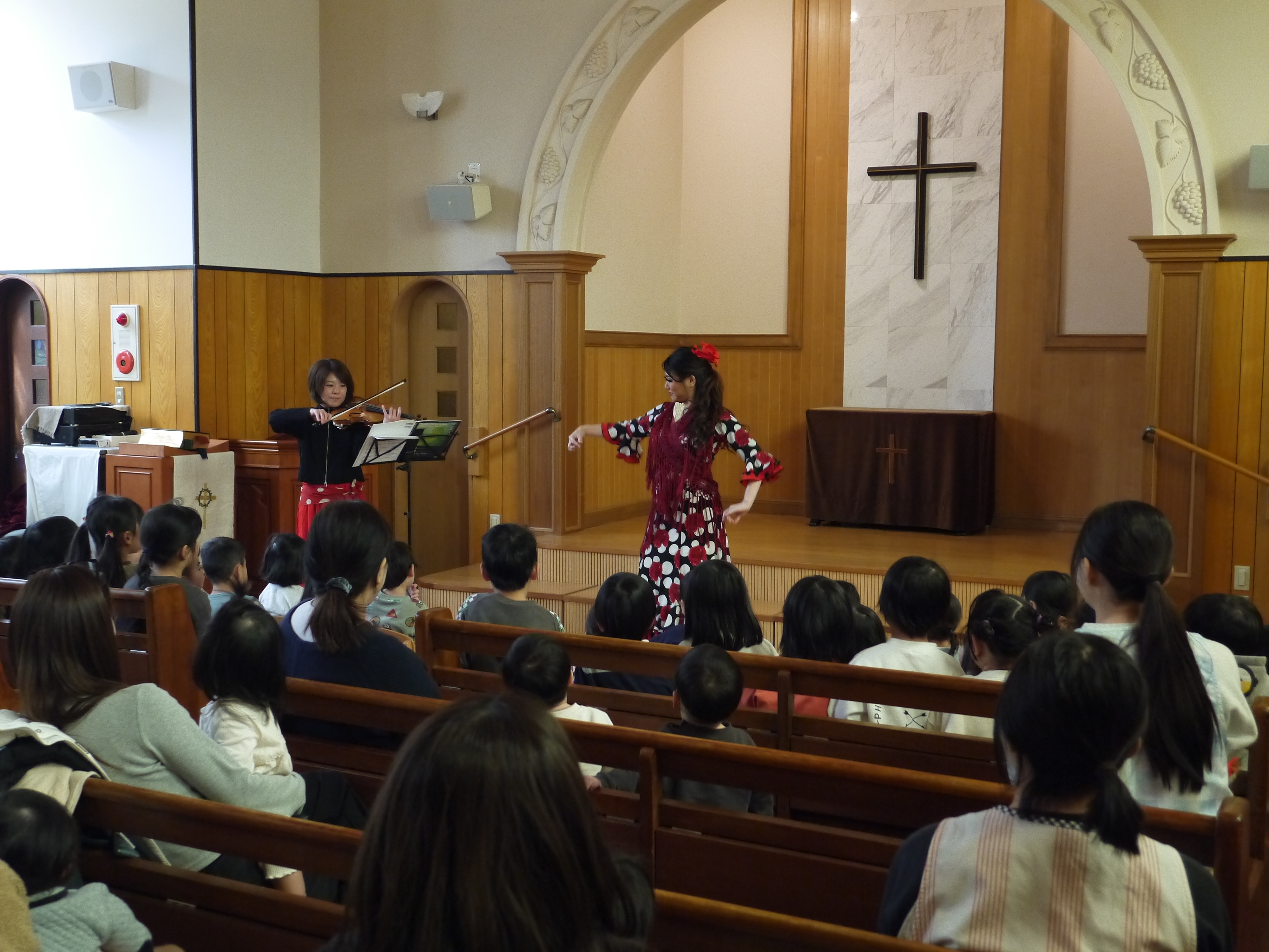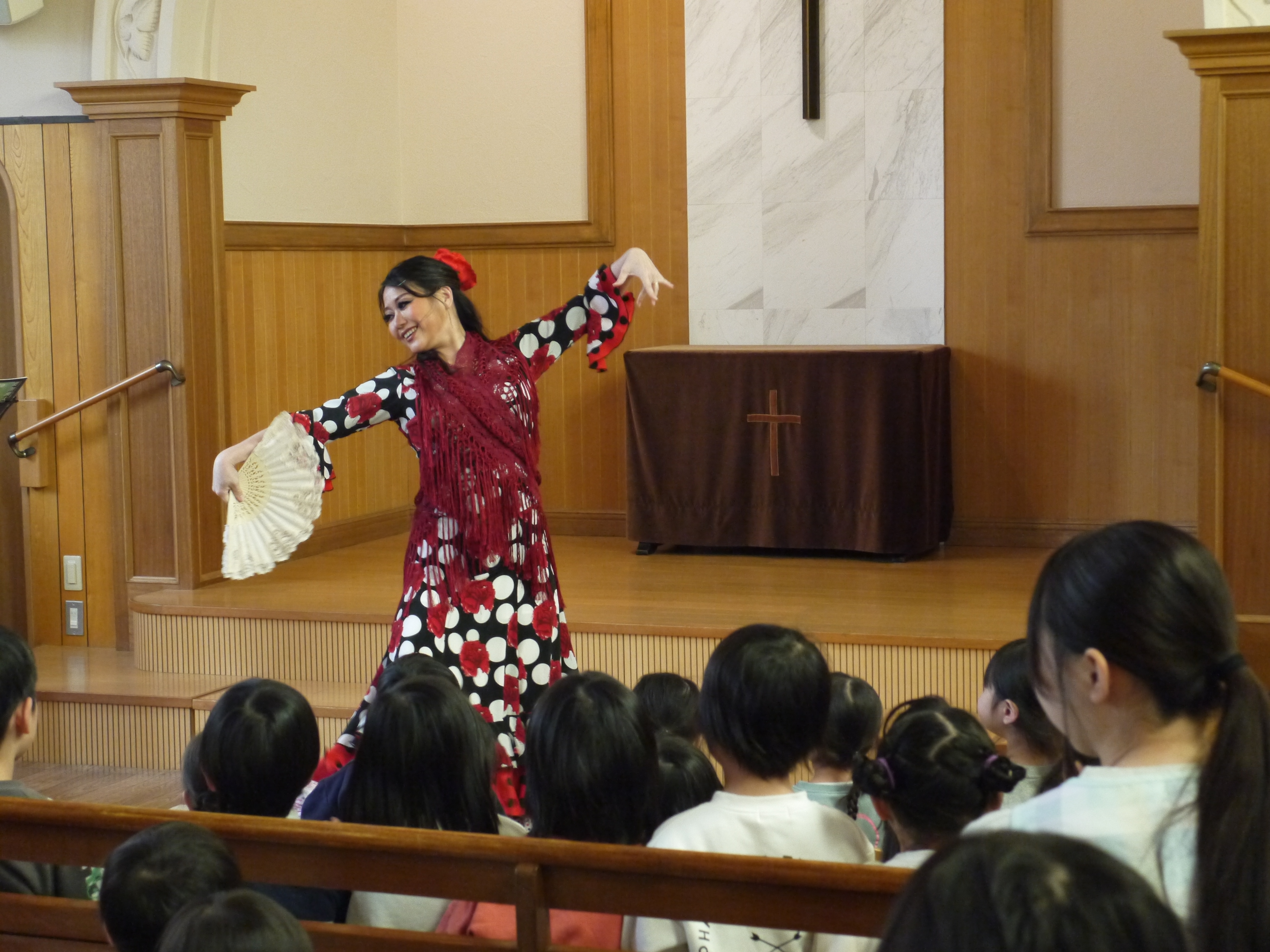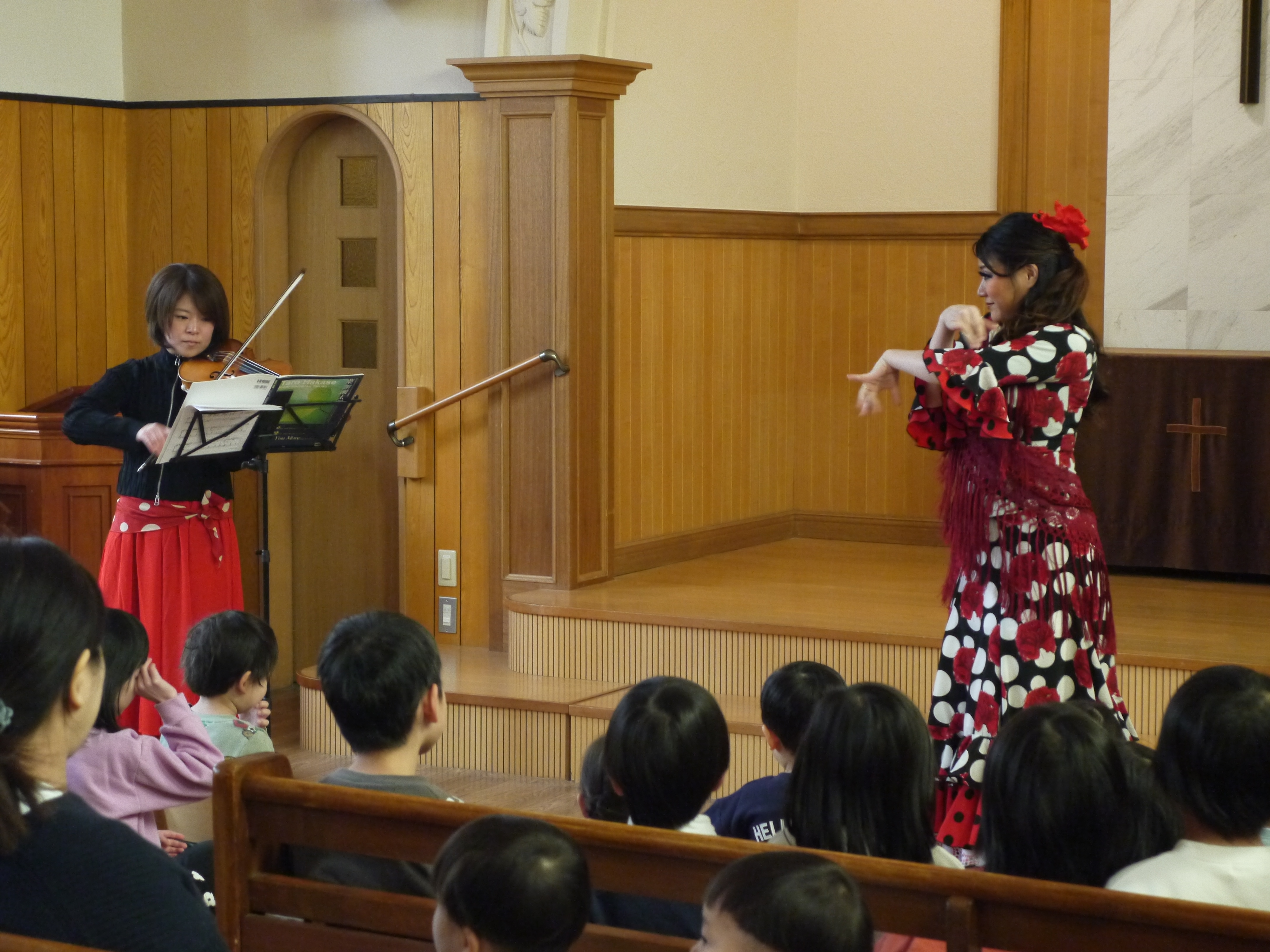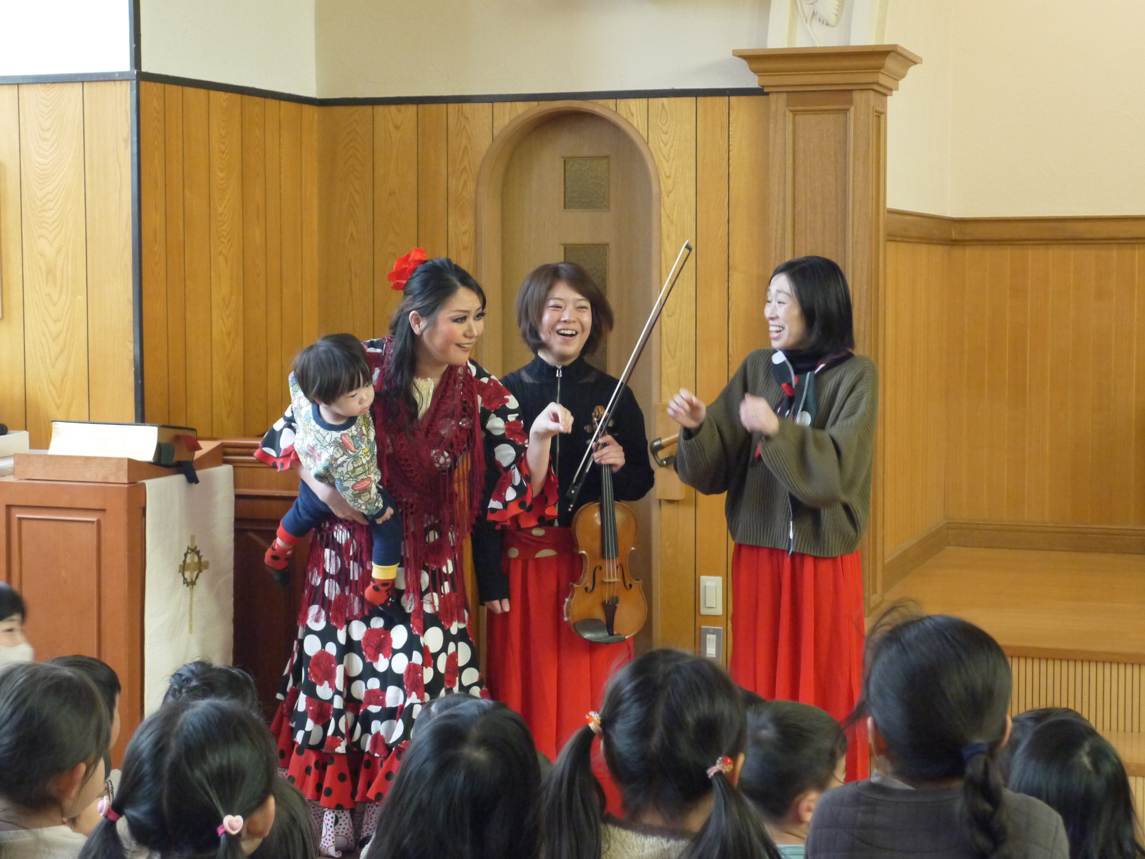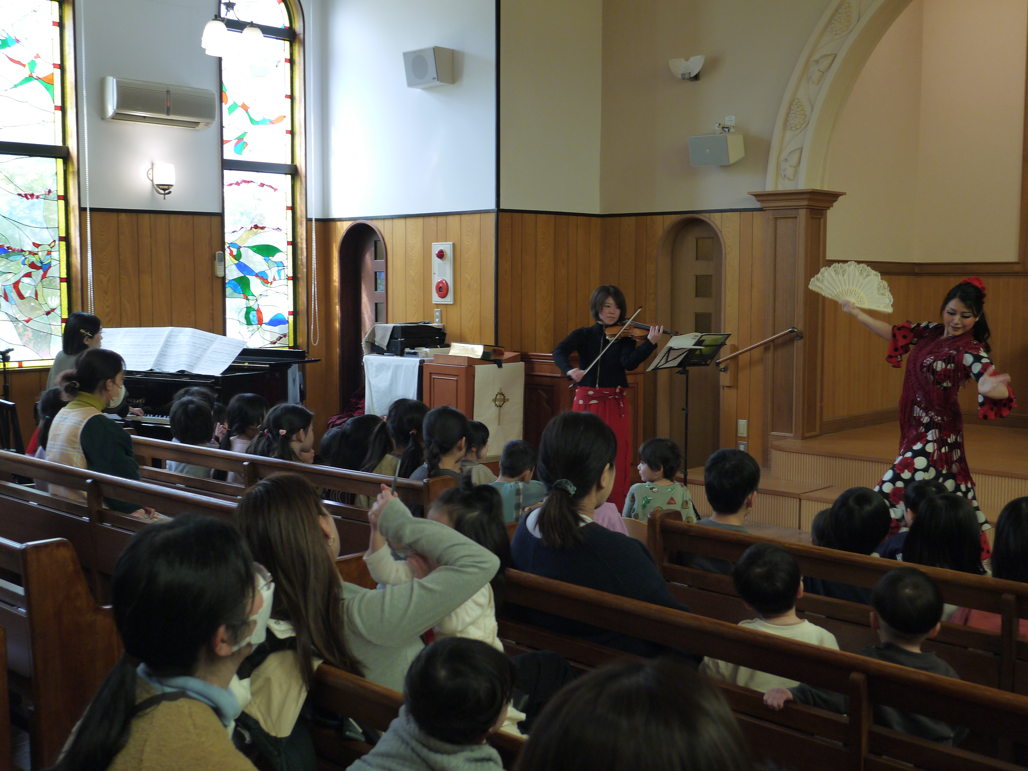 在園の子どもたちも見に来てくれていましたが、みんなとても集中して目と耳を使って参加してくれているのが伝わってきました(^^)フラメンコダンサーのあきこさんが、子どもたちも参加型で楽しめる曲も取り入れてくださったり、みんなでとても楽しく素敵な時間を過ごさせてもらいました!