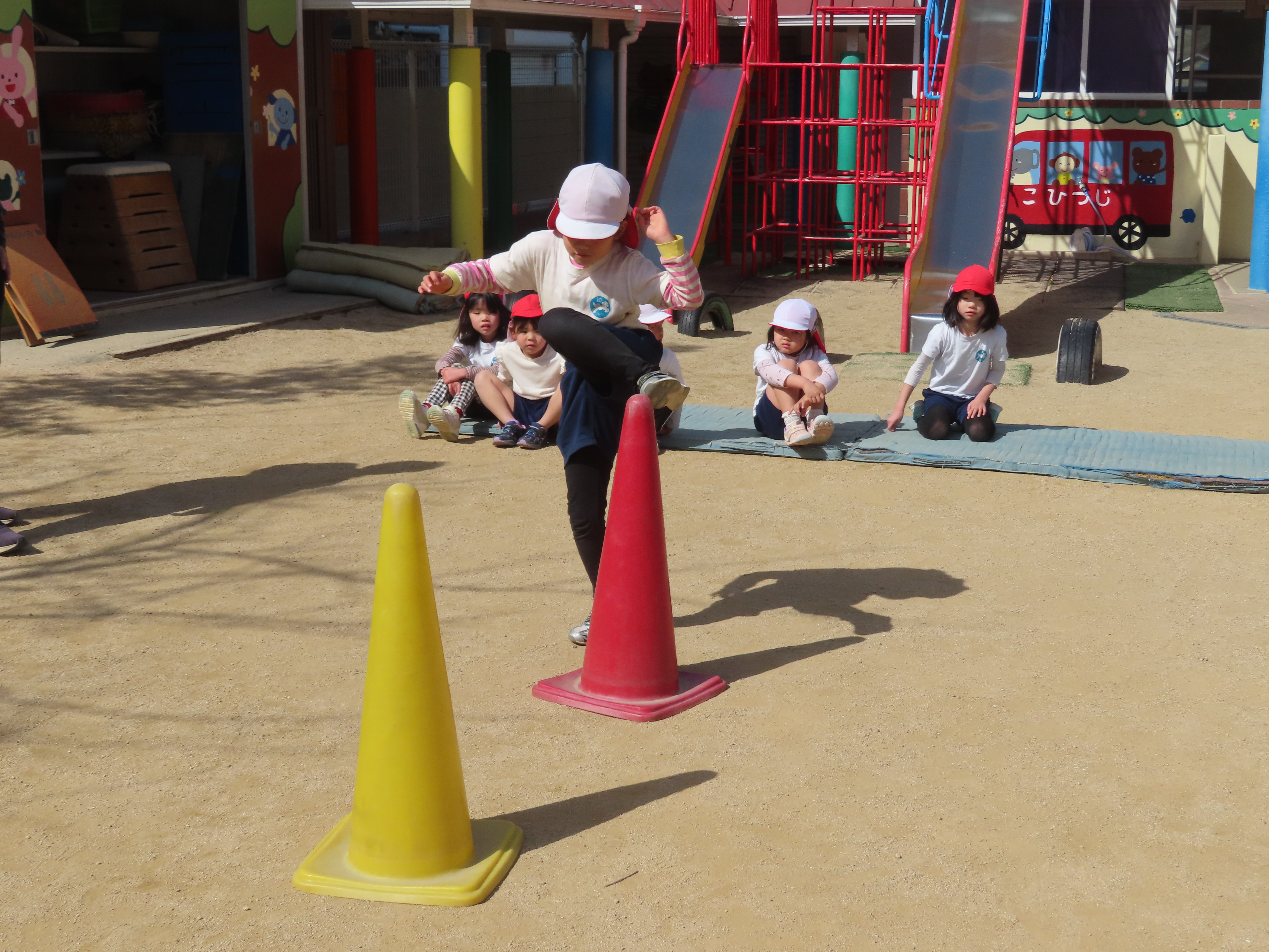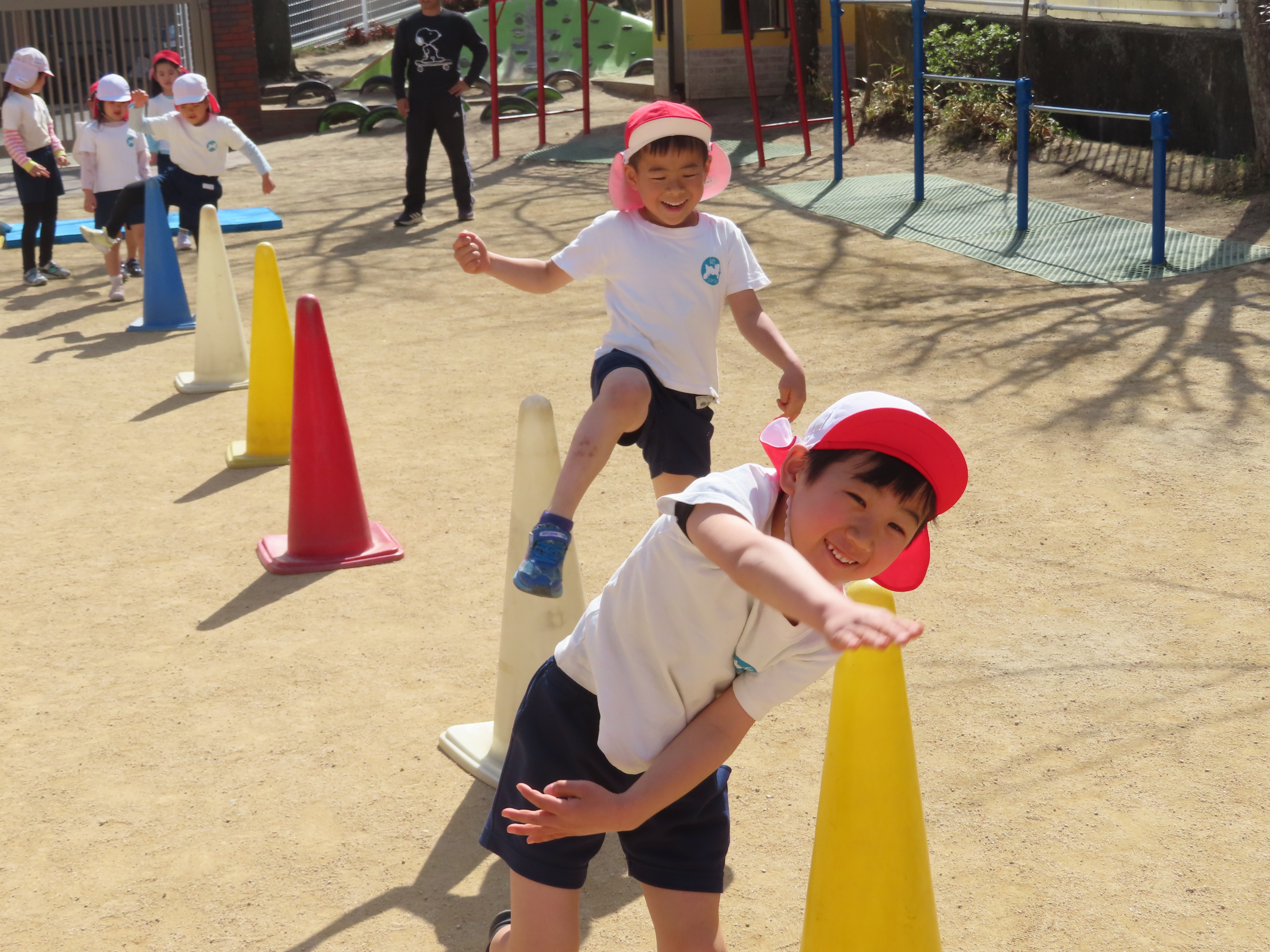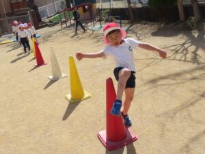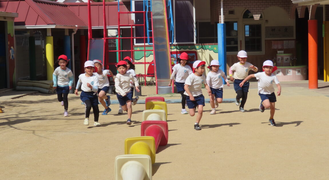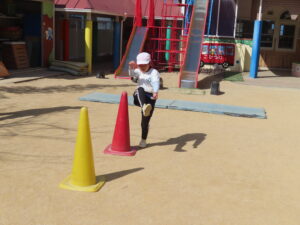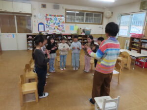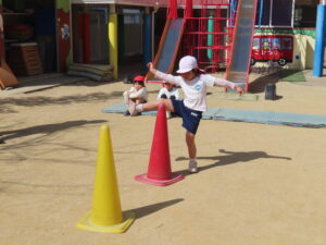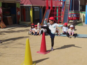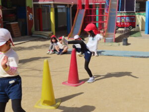 ※体育あそび いっぱい走って、汗をかくくらいでした。こどもたちからも「あっつー」「汗かいたわ」という声がきこえていました。