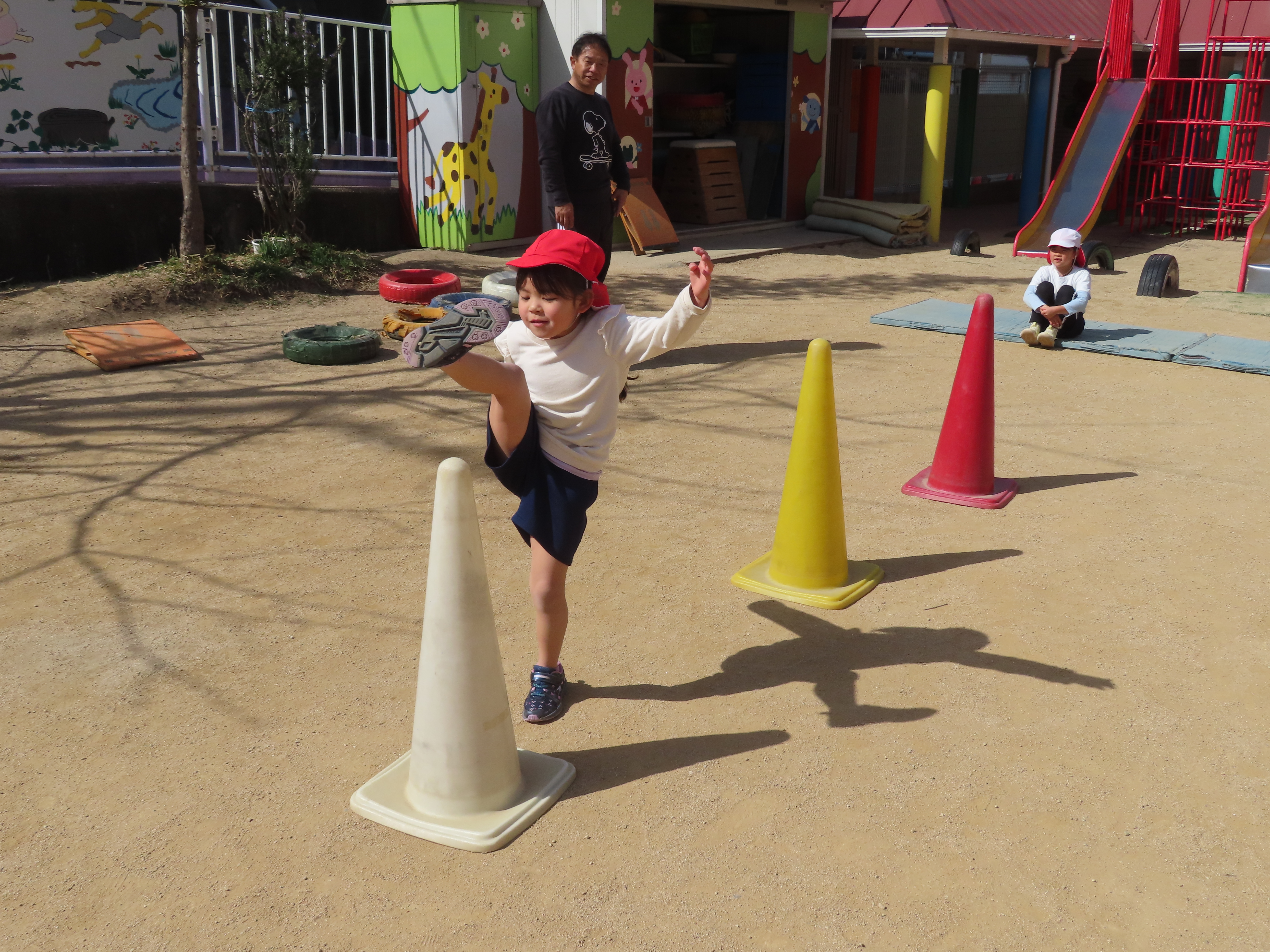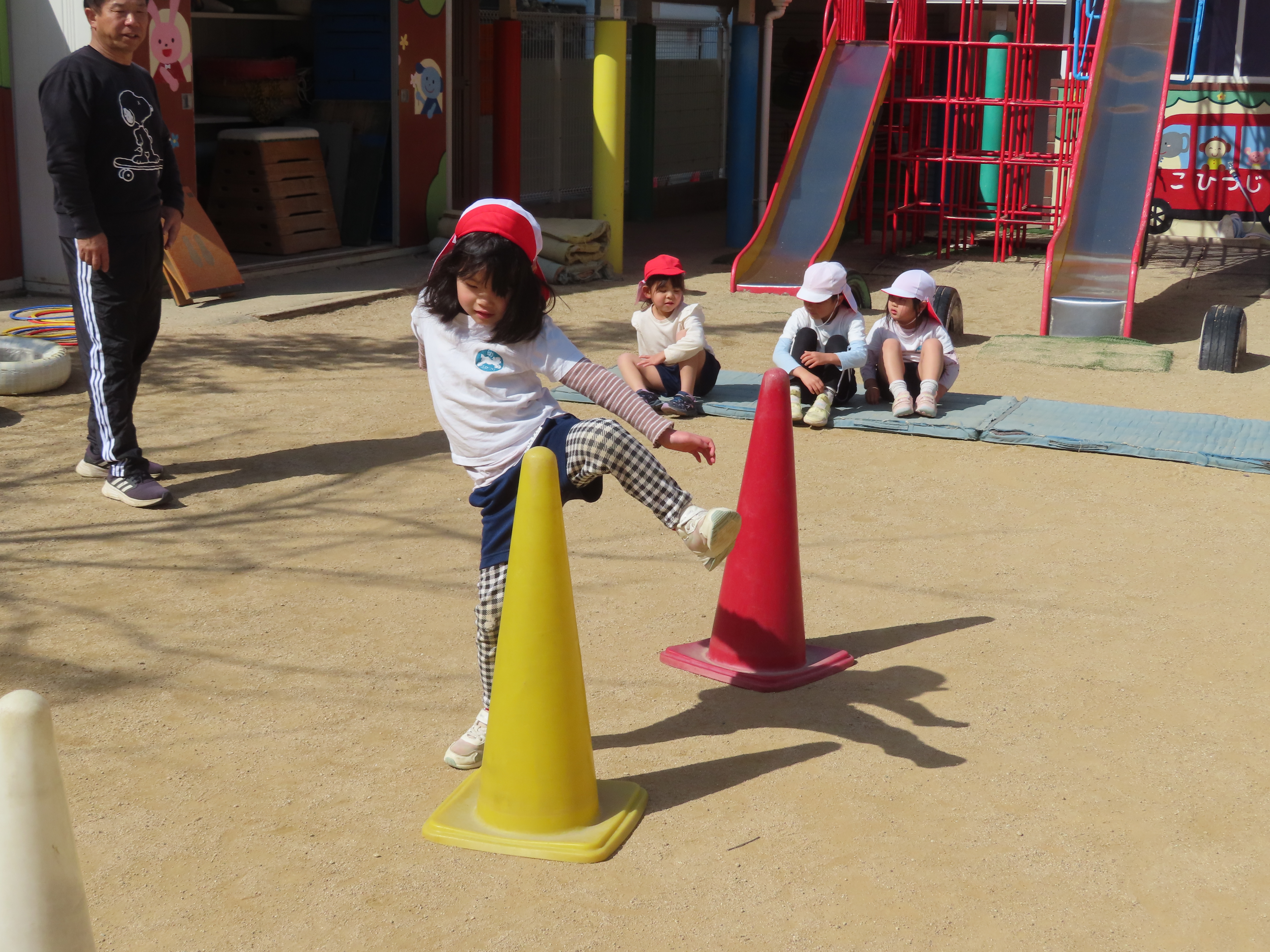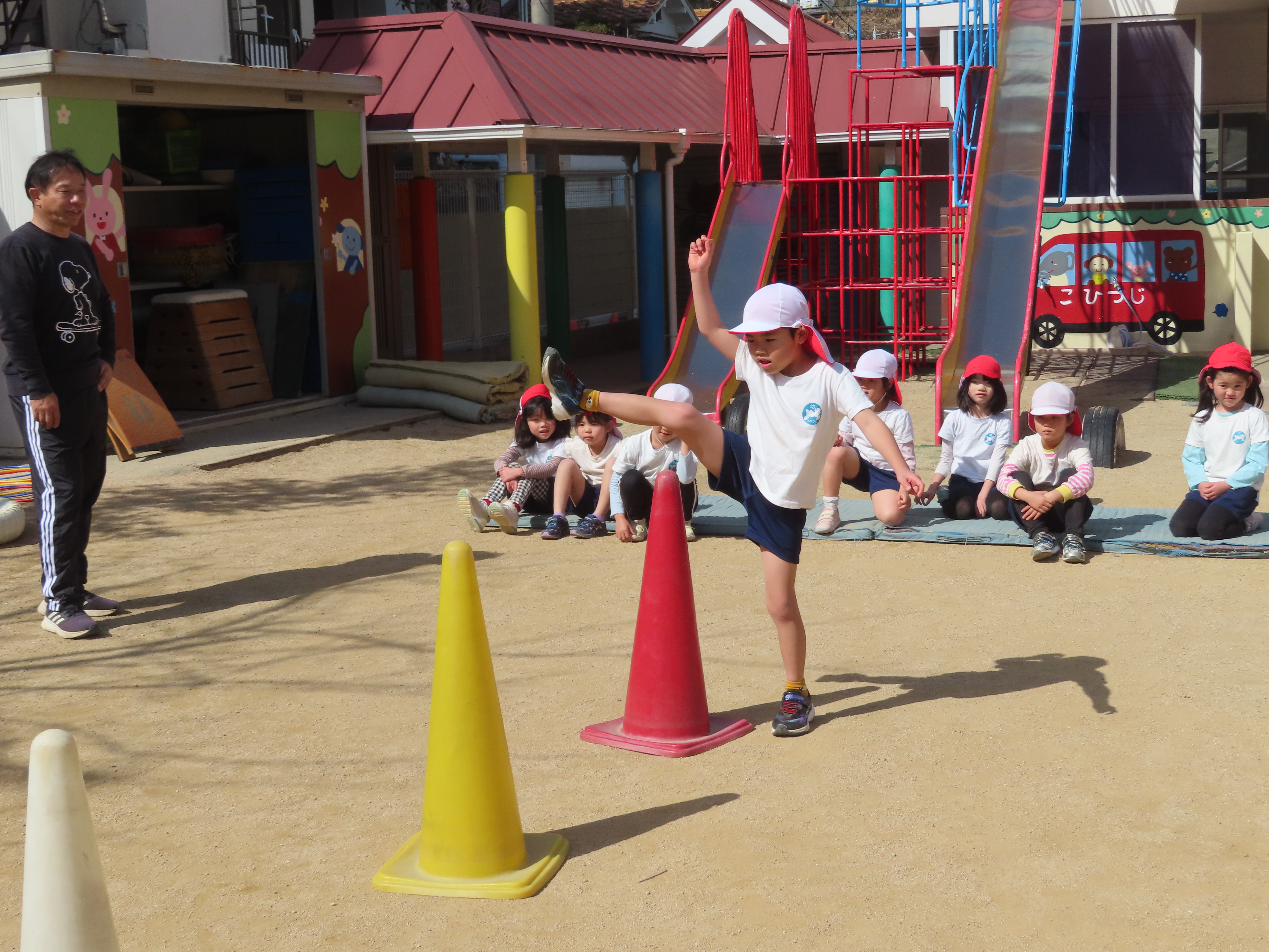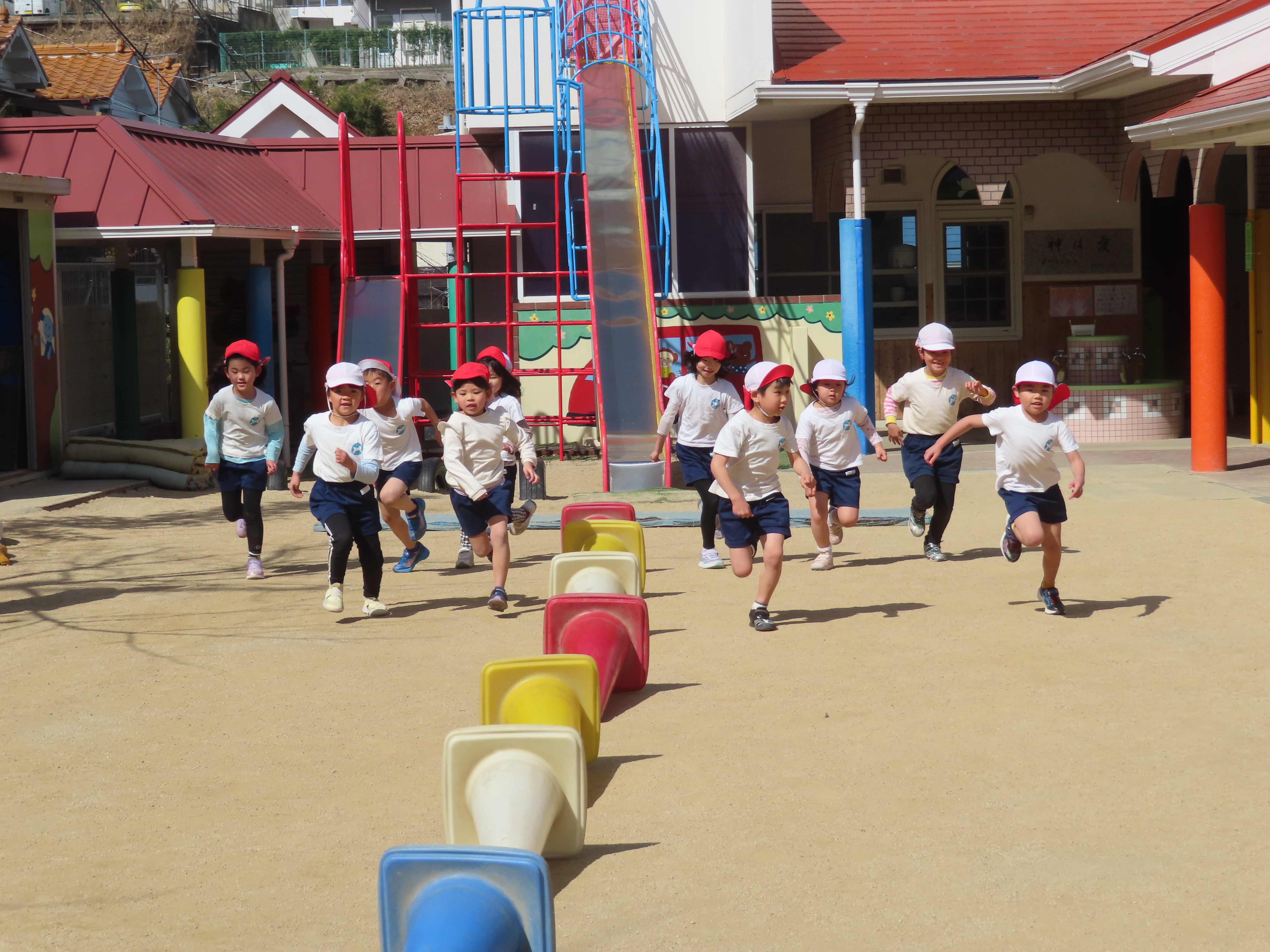 ※体育あそび いっぱい走って、汗をかくくらいでした。こどもたちからも「あっつー」「汗かいたわ」という声がきこえていました。