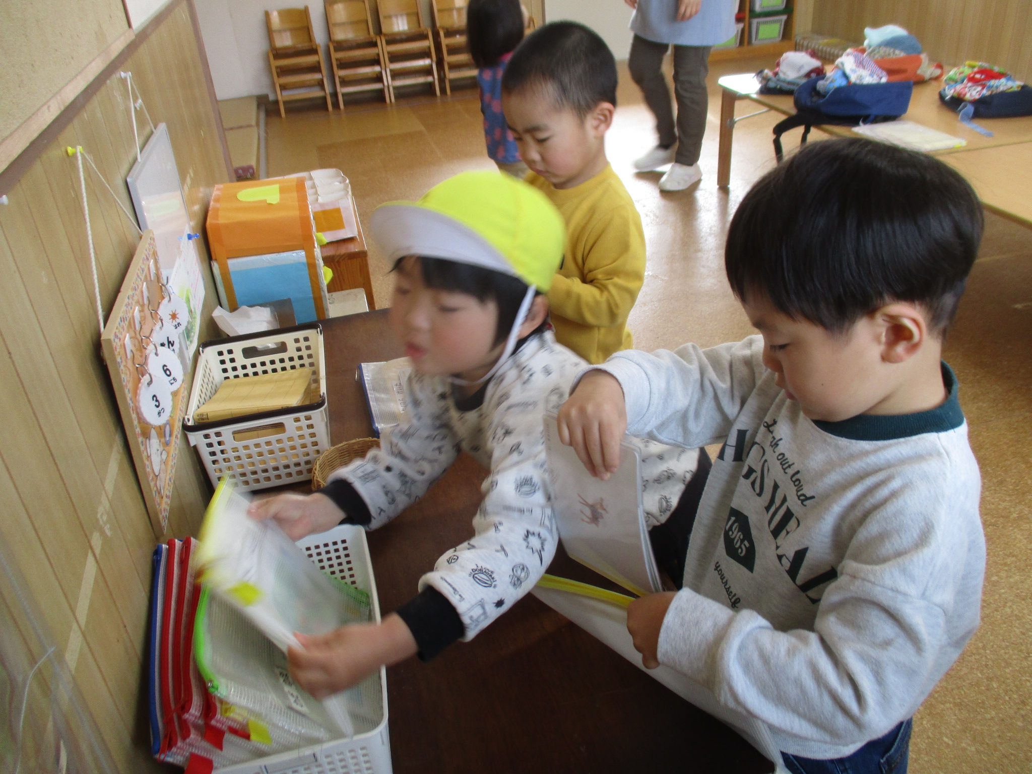 3月になり朝のご用意もすんなりと自分から頑張っています。
