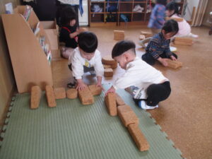 好きな遊びを選んでお友だちと楽しく遊んだり一人で夢中になっています。