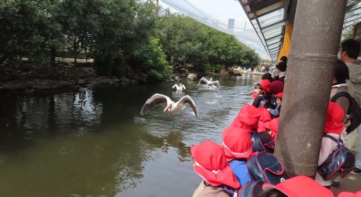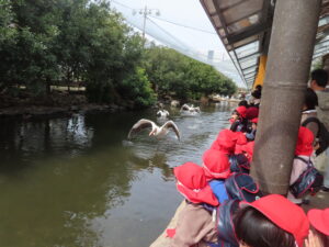 その後は、ハシビロコウ・ペリカンのフライトショーを見ました🎵とっても大きくてびっくりでしたが、みんな大喜びでした🎵