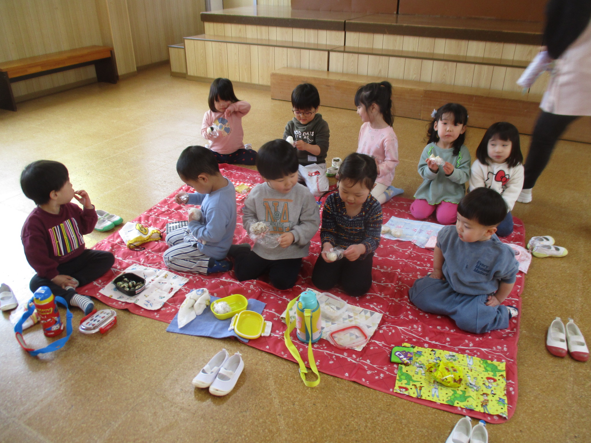 おにぎりをみんなで食べました😊おにぎりの後にはお楽しみのおやつを食べました🎵