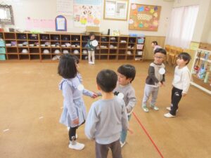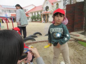 明日は入園式なのでお休みです。次の登園は13日の月曜日です!身体測定があるので自分で着脱できる服装、髪の毛は下で結んでください。