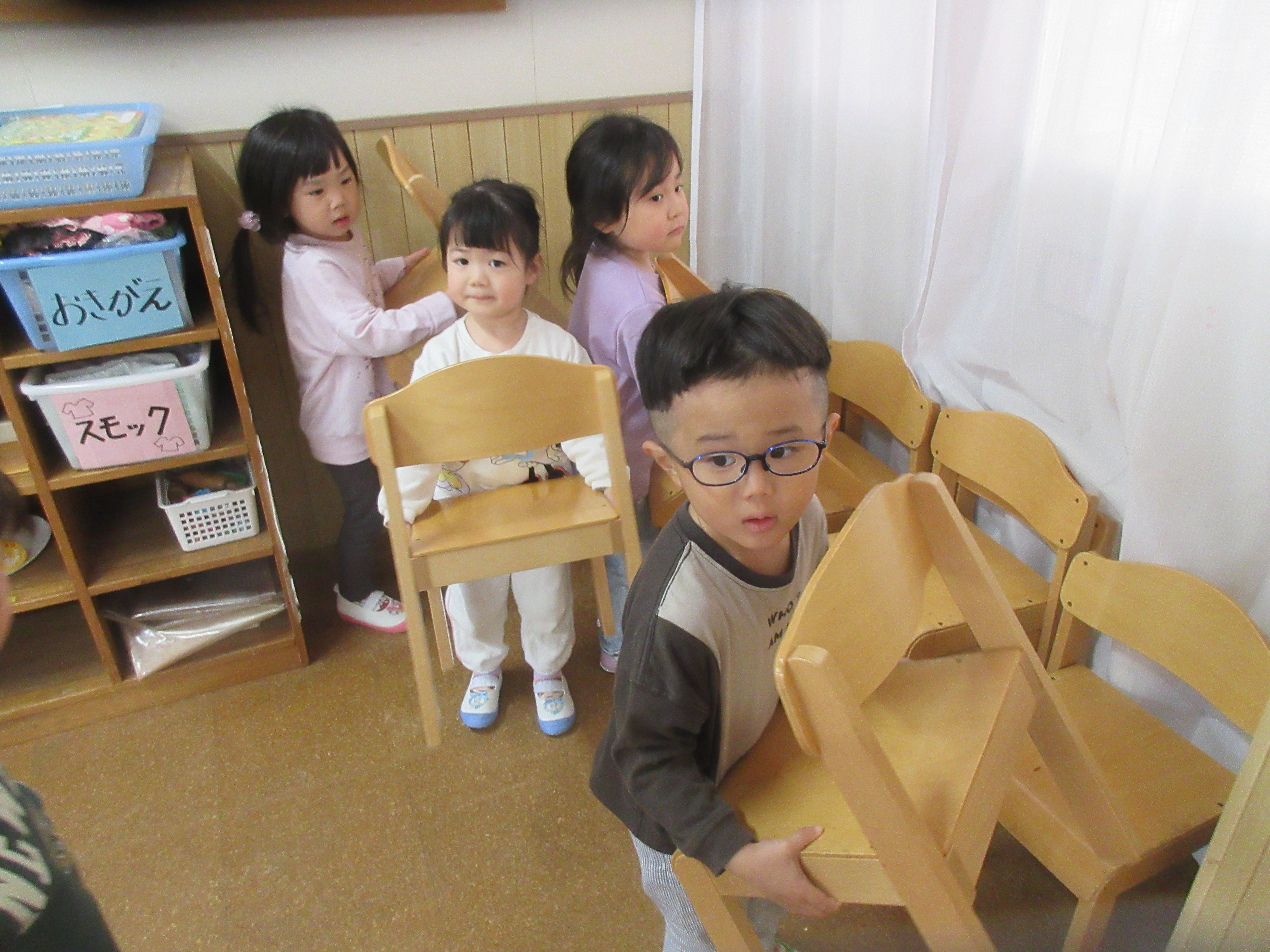 「大きくなった椅子を1人でもって来れるかな?」「持てる!!!」など大きくなってできることをこどもたちが嬉しそうに伝えてくれました😊
